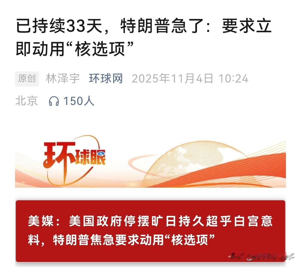 特朗普要“改革”?! 特朗普再次要求动用“核选项”了! 为了破解政府停摆僵局?! 不要小瞧,他正在走向“改革派”! 当前美政府停摆已33天,共和党在参议院仅53席,未达60票的议事门槛,民主党靠“冗长辩论”多次阻挠拨款法案通过 。 动用“核选项”可取消该规则,法案仅需简单多数就能过,既能结束停摆,也能推进共和党其他政策议程 。 即修改参议院规则取消“冗长辩论”机制,以结束政府停摆!