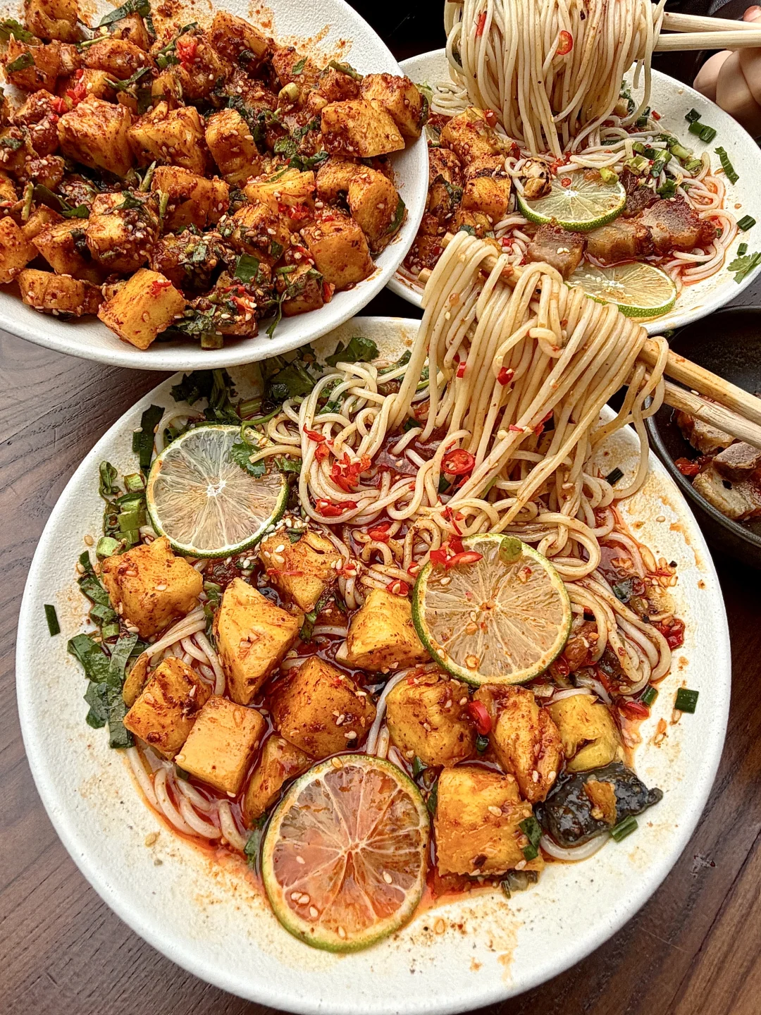 酸酸辣辣的柠檬米线绝入味好吃啊!! 配上糊辣子菠萝,看图就知道多香了🤤 环境中古风好浪漫,到了云南大理一样~真的有被治愈到!随手一拍都很美!好适合约会和过生日! 📍叫:舟白、真心希望长沙这种低调又好吃的小店多开一些!