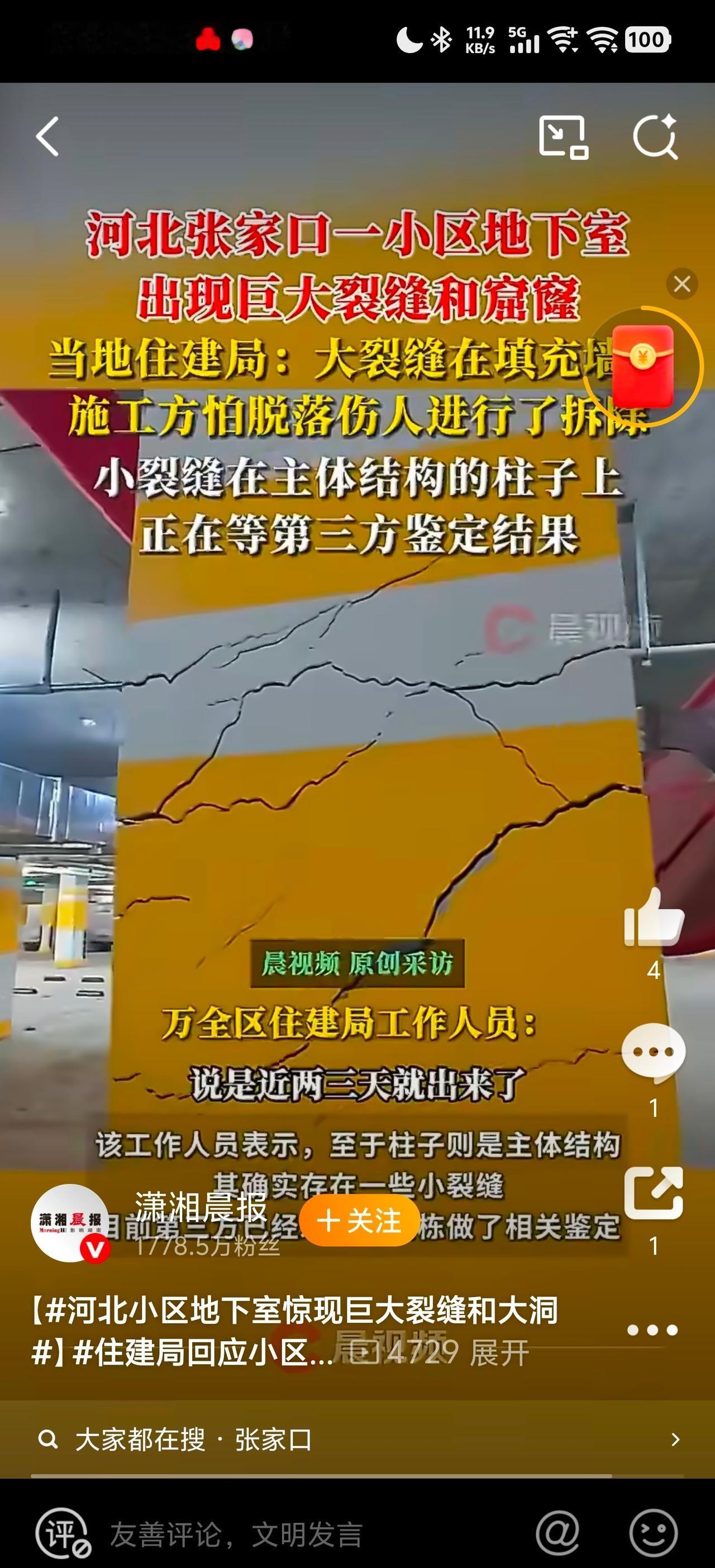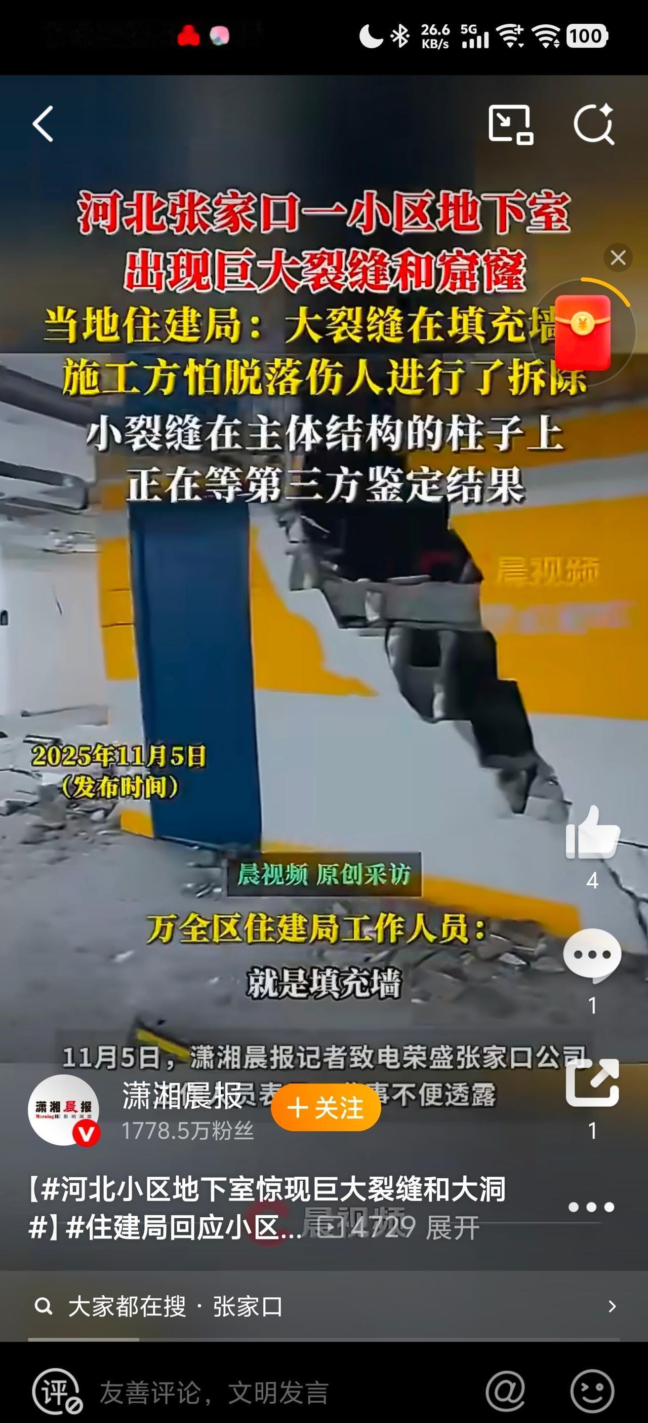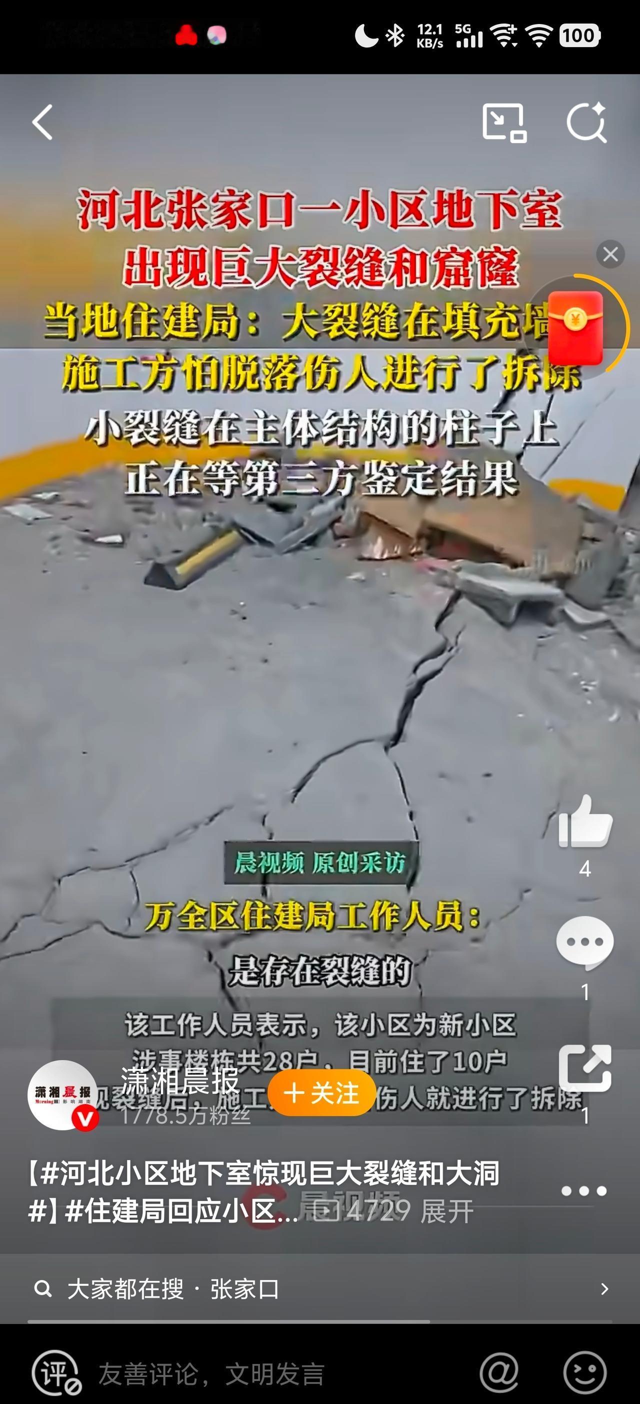 没点开之前我以为能有多大裂缝?? 看着随时都要塌下来似的😔 墙上地上柱子都裂了