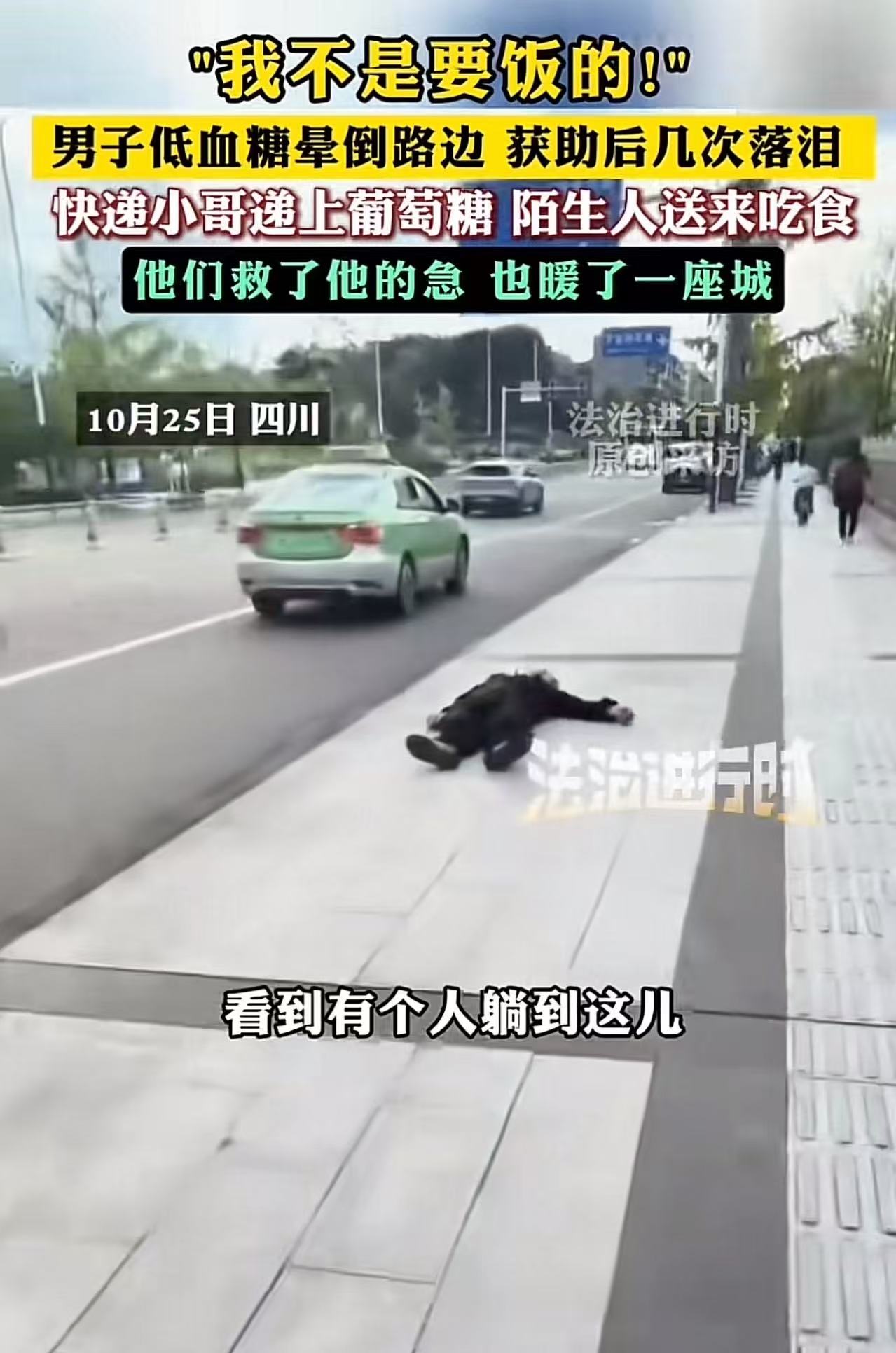 四川,男子低血糖晕倒在路边,路人看到后问要不要帮忙叫120,可男子却拒绝了!大家看出男子遇到困难,不舍得叫救护车,随后一幕令人泪目!网友:他们救了他的急,也暖了一座城!