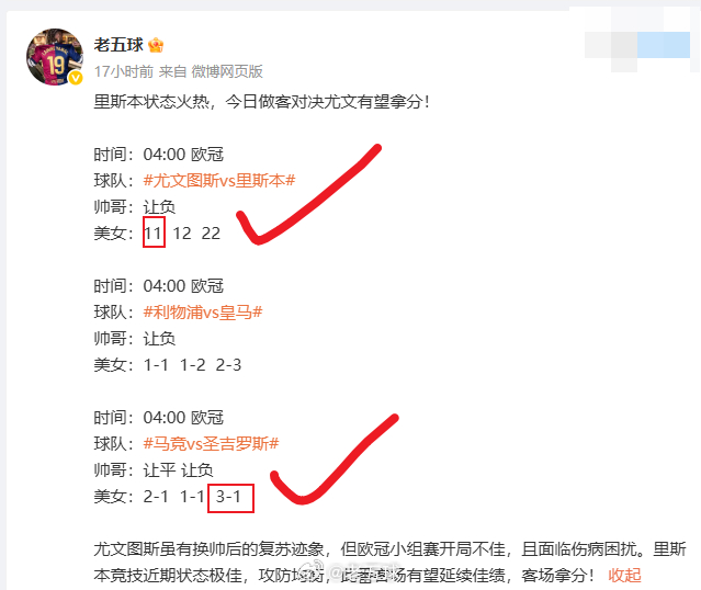 今天的比赛也比较多,亚冠六点钟就一场赛事,就不做公推了,组合晚上八点的亚冠在外面置顶粉丝基地领取即可,无无门槛,不收费嗷~~,另外今晚的欧冠,老五等晚点数据稳定第一时间在裙内公推,兄弟们自行领取!