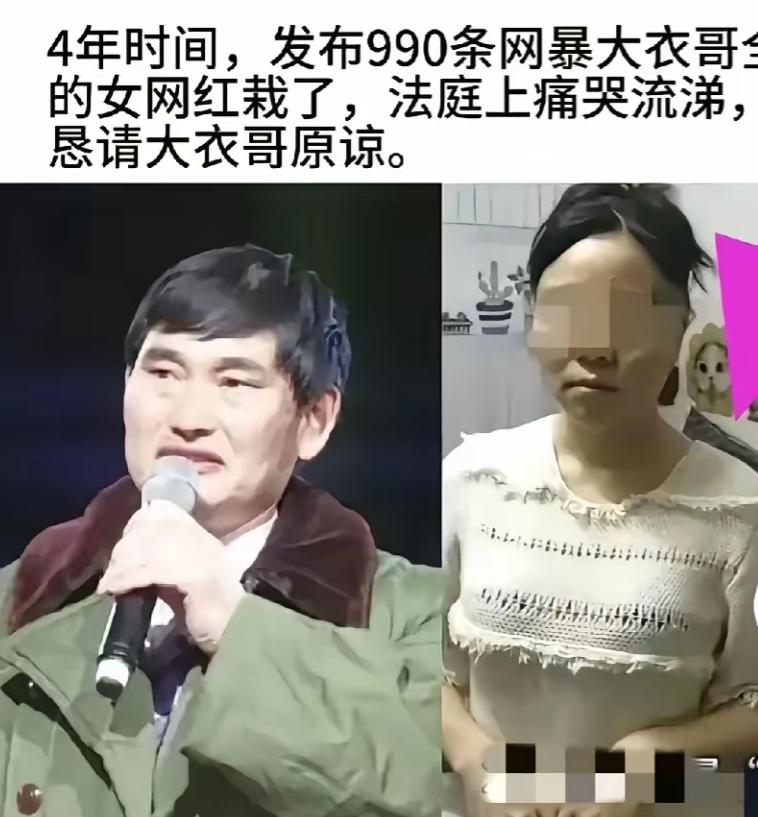 女网红哭得稀里哗啦,当庭求饶。大衣哥没有心软,终于送她进去踩缝纫机了,判了6+4个月,这就对了!该女子四年时间在网上发布了990条侮辱诽谤大衣哥全家的言论,当时有多嚣张,现在就有多落魄。 麻烦看官们右上角点击一下“ 关注”,既方便您进行讨论和分享,又能给您带来不一样的参与感,感谢您的支持! 四年的网暴,终于等来了那一声清脆的法槌,朱之文那个被大家亲切叫作“大衣哥”的农民歌手,在法院门口笑得有些疲惫,他说那块压在心口多年的石头,终于落地。 那一头法庭上的女被告不停鞠躬道歉,嗓子哑了,可时间不会倒退,四年间,她剪辑了上百条侮辱视频,把他P成各种怪样子,恶意捏造、胡编乱造,甚至造出“丑闻”“黑料”,一条点击量二十多万,二十九条播放过五千,满屏的谩骂、调侃、嘲笑,在网络上铺天盖地。 起初大衣哥只是劝一句:“别造谣”没想到,对方更来劲,视频一条比一条恶毒,律师打电话过去,对方一听是“大衣哥的律师”,立马挂断,换个号再打,干脆拉黑。 就这样一个原本老实唱歌、种地的农民,被硬生生拖进了一场四年的网暴阴影,有人把这当成茶余饭后的笑料,有人当段子转发,没人真去想,屏幕那头的他,每天要面对怎样的伤害。 这位女“黑粉”的理由简单得可笑:看他“不顺眼”,在流量时代,有人靠才艺出圈,也有人靠骂人博眼球,她的短视频账号靠着侮辱别人涨粉、接广告、收礼物,甚至还觉得自己挺聪明。 可她忘了网络世界不是平行宇宙,侮辱与诽谤不会因为隔着屏幕就变得合法,十个月的刑期听上去不重,但足够让她明白:键盘不是盾牌,造谣也要付出代价。 庭审那天,律师念着证据,一条条视频、一条条评论像被剥开的疮口,屏幕上的播放数据冷冰冰地亮着,那些“哈哈哈哈”“活该”突然变成了沉重的数字,等法官宣读完判决,他轻轻点了点头,那一刻,才算真正松了口气。 这场官司,除了惩罚一人,更像是给整个互联网上了一课,过去太多人以为,只要在网上,就能随意发泄情绪,想骂谁就骂谁,有人不喜欢明星,就剪视频骂他;有人嫉妒网红,就造谣抹黑,大家都抱着侥幸心理:反正隔着屏幕,谁能找到我?可这一次,法院告诉他们——能。 这几年网络暴力像一场“无硝烟的流行病”,它不用枪不用刀,只靠几句话、几个视频,就能让一个人背负莫须有的罪名,有人因此不敢出门,有人彻夜失眠,有人甚至被逼到绝境。 更可怕的是,造谣者往往不觉得自己错,他们说“我只是转发”“我只是调侃”,仿佛加个笑脸就能抵消伤害,可真相是,舌头底下压死人,键盘敲出的每一个字,都是一颗子弹。 互联网当然该有言论自由,但自由的前提是边界,表达不是撒野,批评不是侮辱,喜欢可以点赞,不喜欢可以划走,没必要把别人的人生当作消遣,那一点底线,既是道德,也是法律。 对此,大家有什么看法呢?