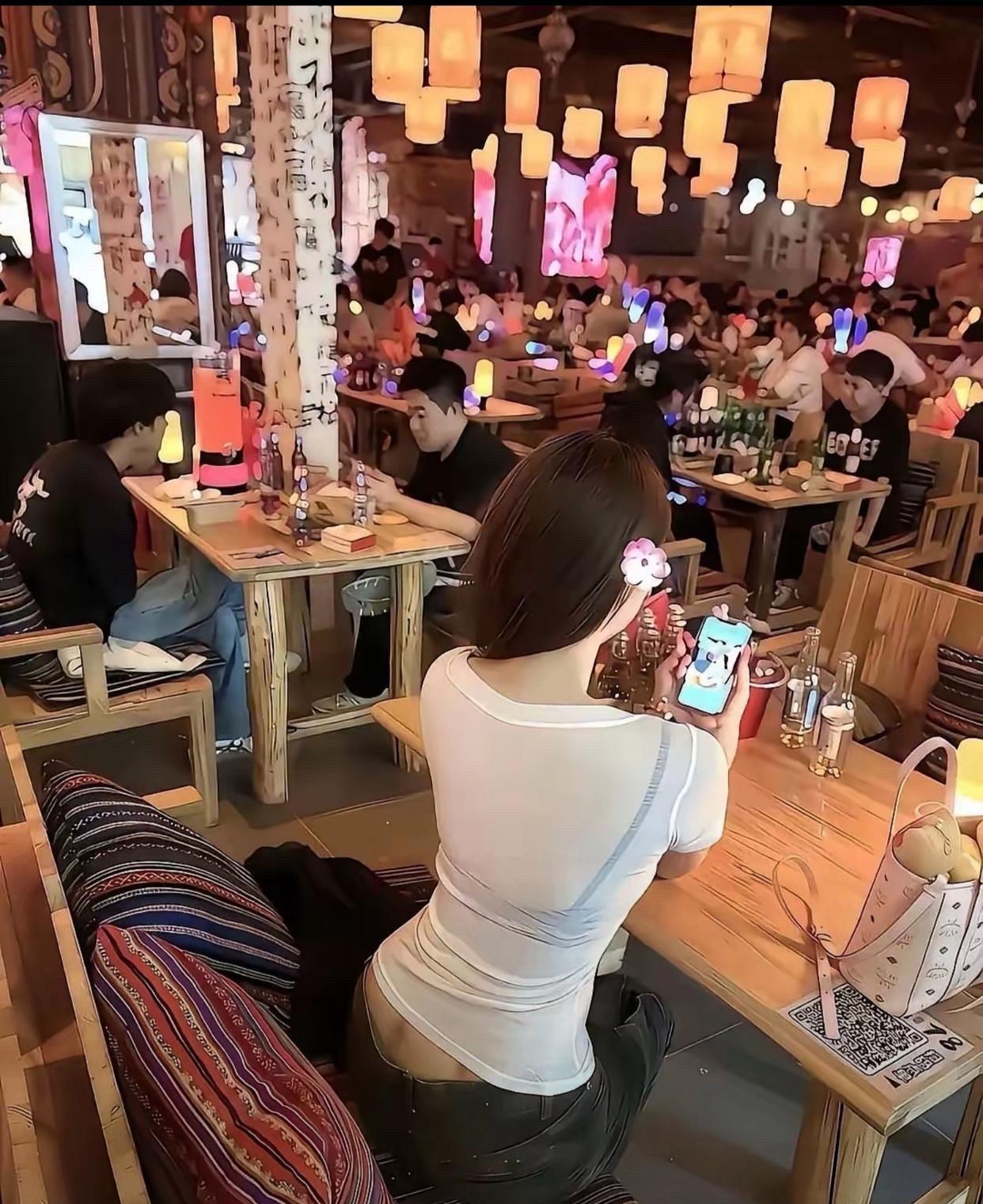 这背影看着都让我了上前搭讪的冲动! 暖光裹着烟火气漫开,她背身蜷在靠垫里,发梢别着的小花轻晃。桌角酒瓶泛着细碎光斑,衬得腰线弧度浸了松弛的甜。不用看脸,脚步已先一步想往这桌凑,连开场白都在心里打了几遍草稿,只想借着这热闹氛围,敲开这场偶然撞见的松弛心动。