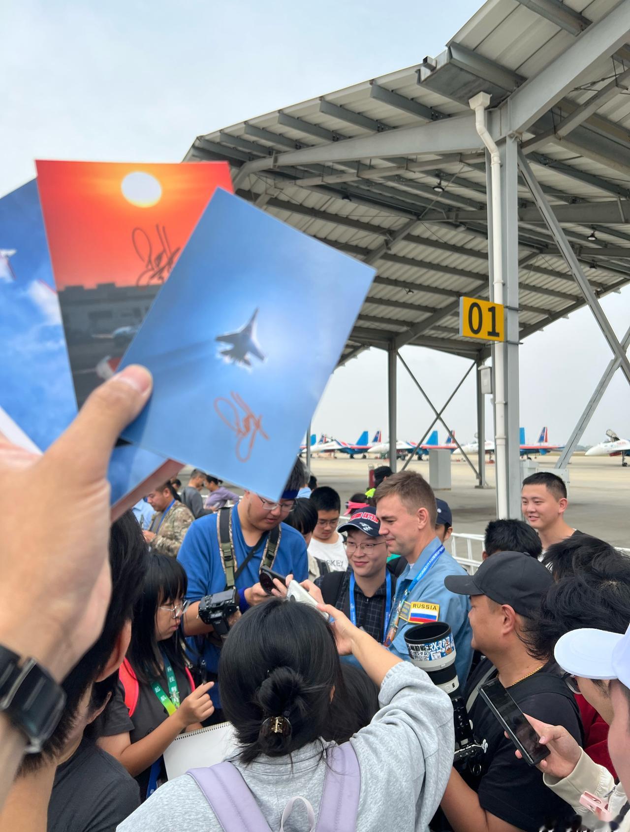 这次不仅拍到了勇士打干扰弹,还跟飞行员合照,自己拍的作品也要到了签名