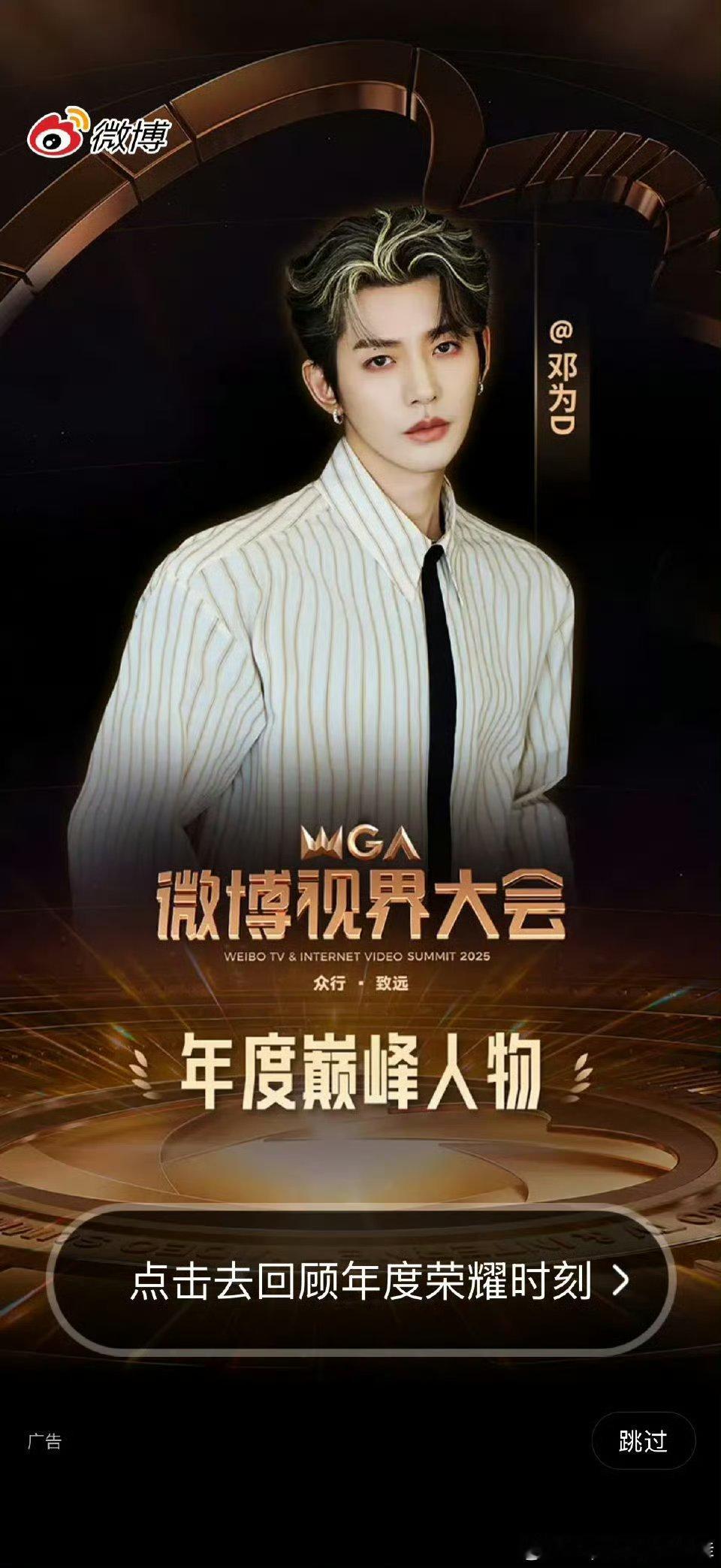 邓为微博视界大会年度巅峰人物开屏,为子的商业价值就是🐮,柜姐晒单钻石买邓为同款💎,太多了都排单中,邓为一周八个品牌创下3.68亿销售总额商业价值含金量依旧在上升! ​​​