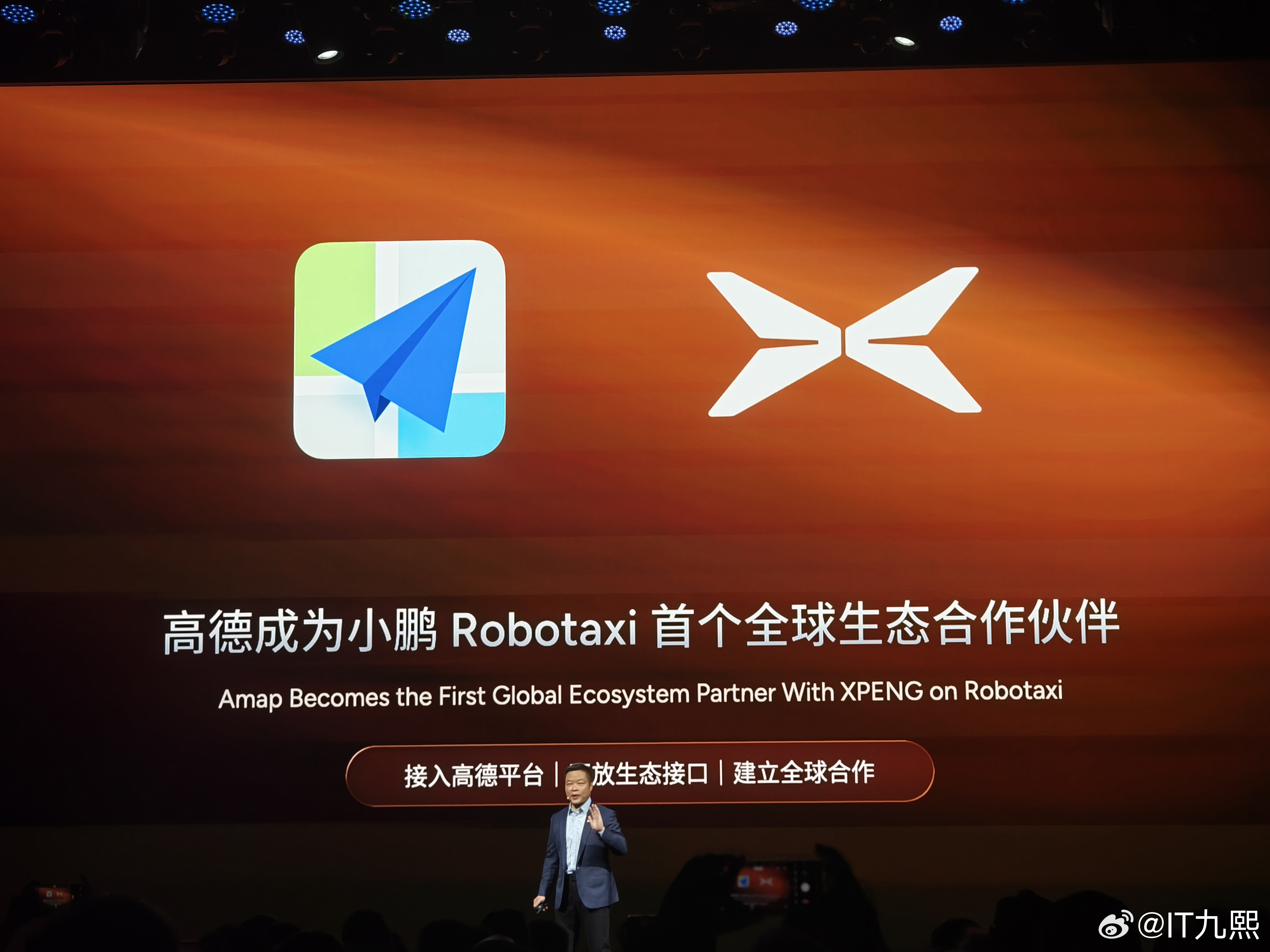 高德将成为小鹏Robotaxi的首个全球生态合作伙伴,期待未来在高德平台可以打到小鹏的Robotaxi,而且这项服务不只局限于中国,小鹏将和高德 一起建立全球化的Robotaxi服务体系。