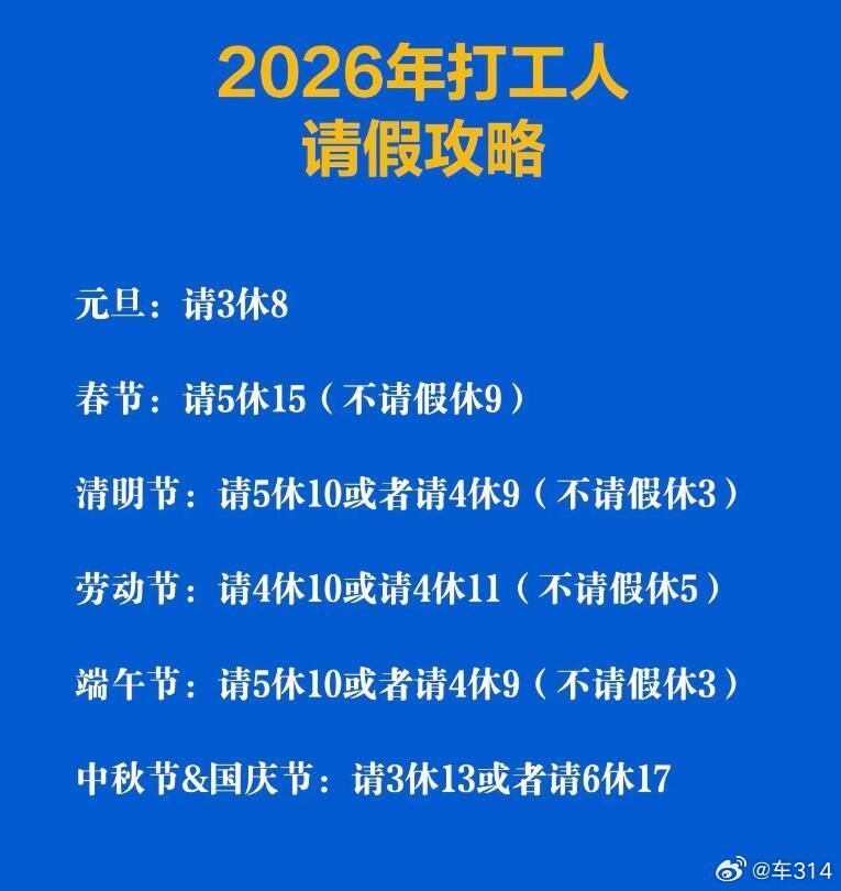 请6休17史上最长9天春节假期2026年国庆拼假能休17天