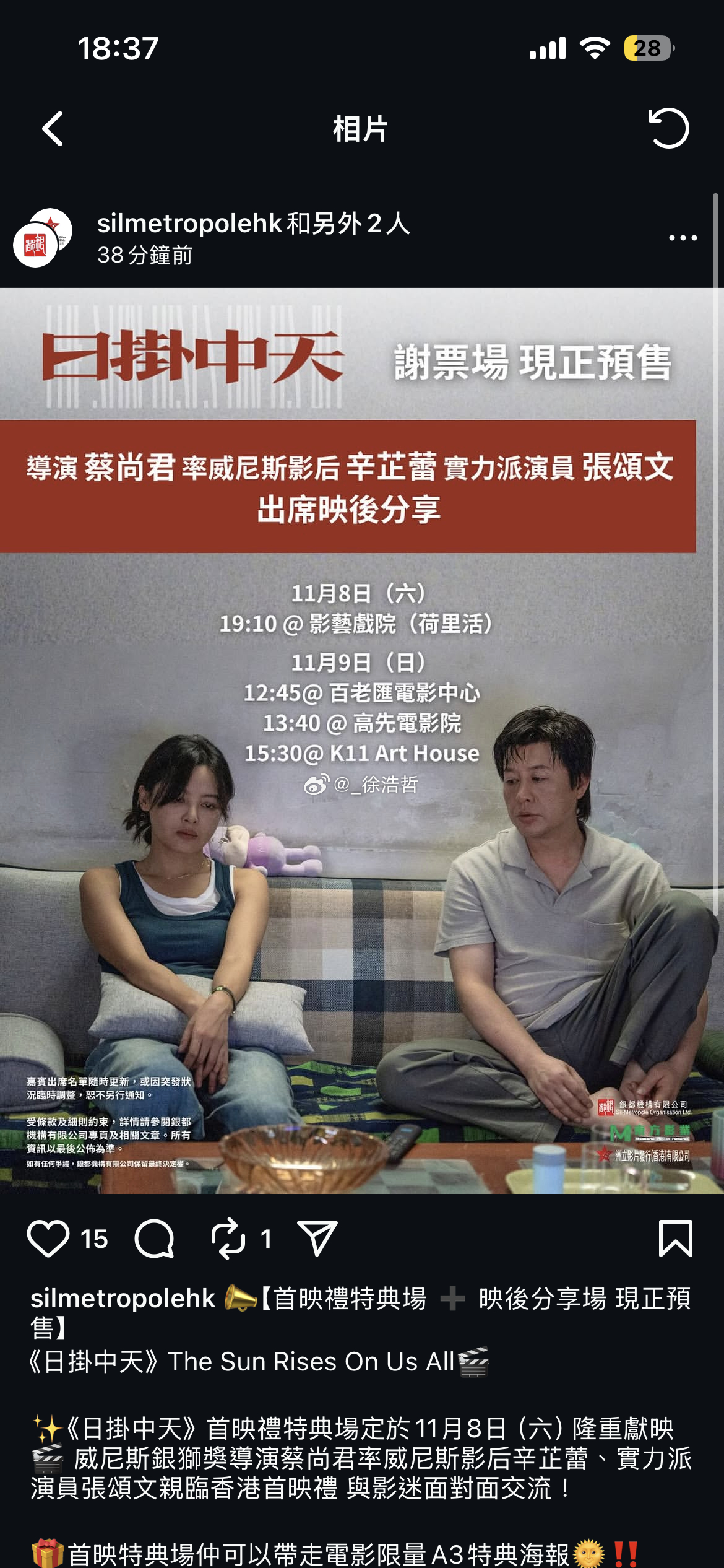 11.8-11.9两天 导演蔡尚君率威尼斯影后辛芷蕾,实力派演员张颂文出席「谢票场」映后分享