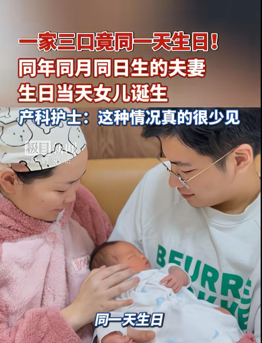 真是特别的缘分呀 一对夫妻俩是同年同月同日生 刚好他们过28岁生日那天 女儿出生了 宝宝的到来是给他们最好的生日礼物 这样他们一家三口都是同一天过生日 以后每年买一个生日蛋糕就行了[呲牙] 省钱了省礼物了[偷笑]