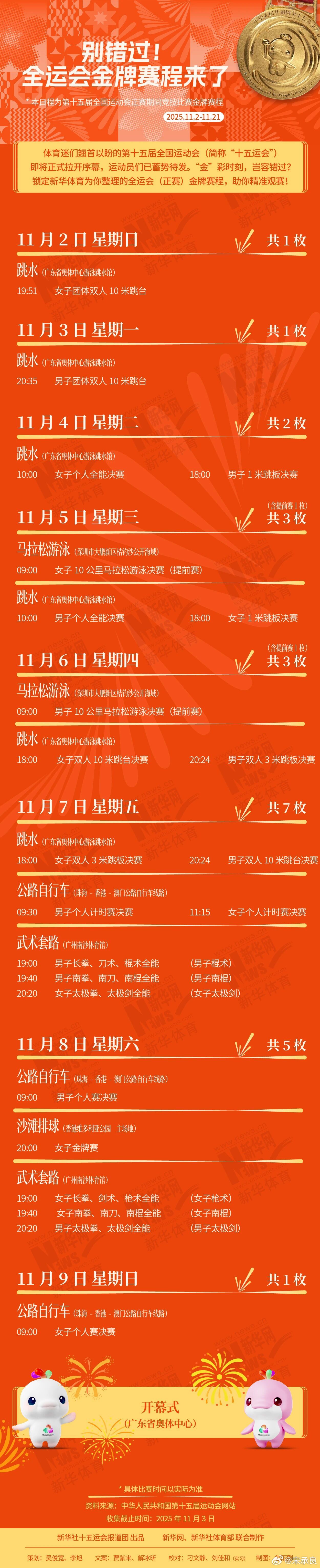 十五运开幕式倒计时4天全运会第十五届全运会金牌赛程via 央视体育,争取也去看一下,广州已经五六年没去了[跪了]
