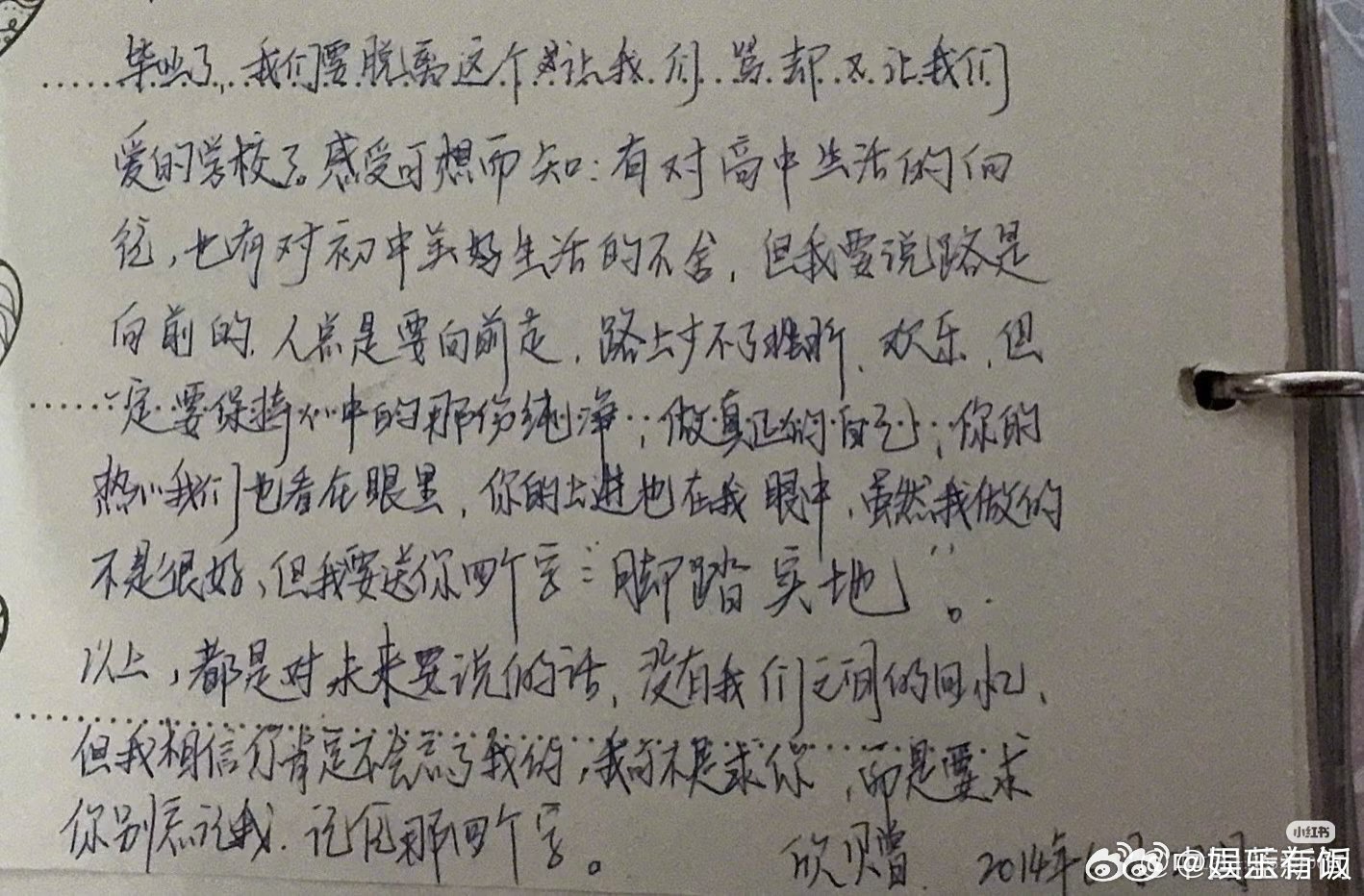 郭宇欣被初中同学赞品学兼优郭宇欣初中时的字 11月4日,演员的初中同学意外翻到曾经的同学录,发现有郭宇欣的留言,郭宇欣给她留言,要“脚踏实地”。这名网友还回忆到:她那时候就品学兼优,长得很漂亮,是我校园时光向往的“天使”一般的存在。网友表示:“不仅人漂亮,字也很好看”[期待]