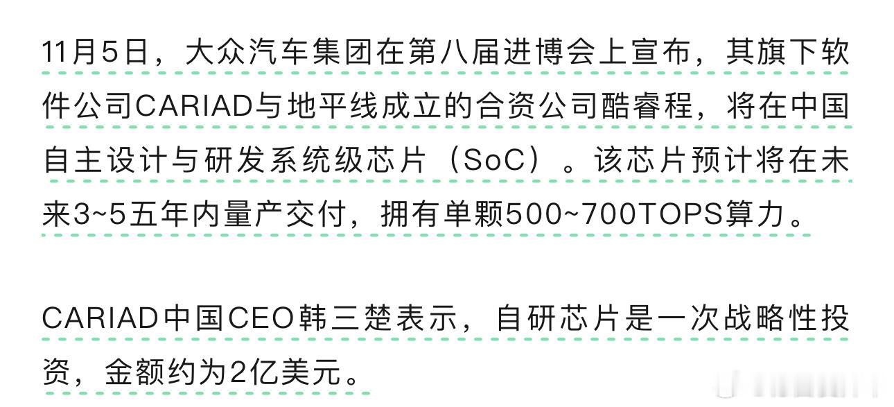 地平线与大众汽车集团深化战略合作;