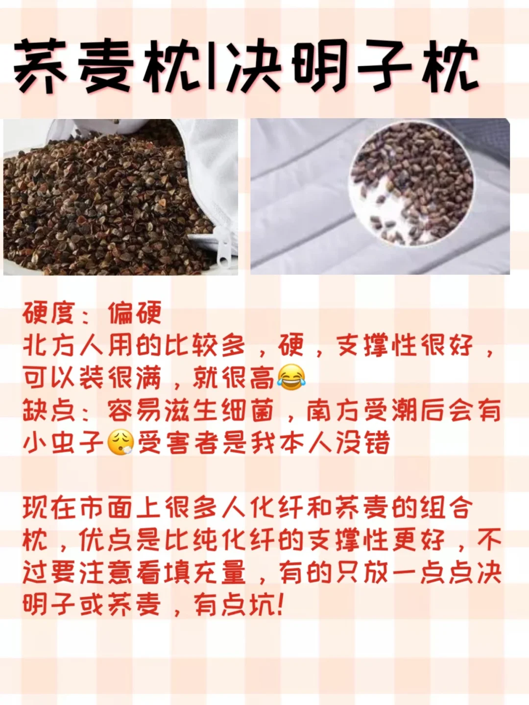 还有的是化纤和决明子/荞麦的组合枕,这种会比单独的化纤枕硬度大