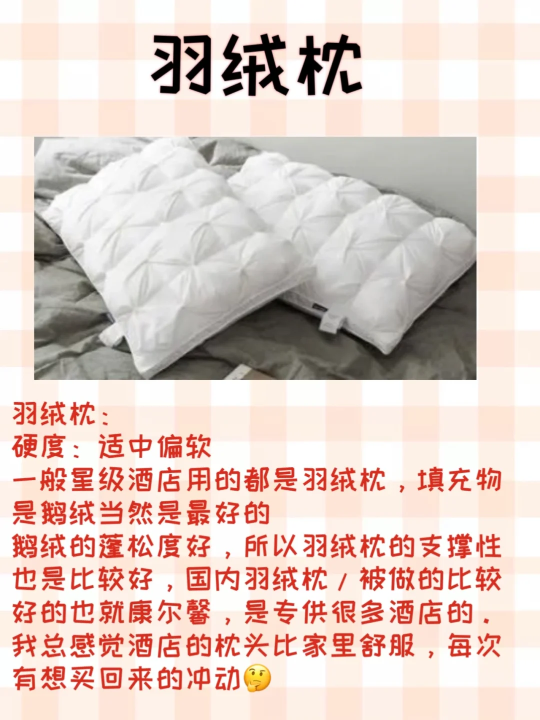 硬度:适中偏软,一般专供星级酒店,填充物是鹅绒的最好