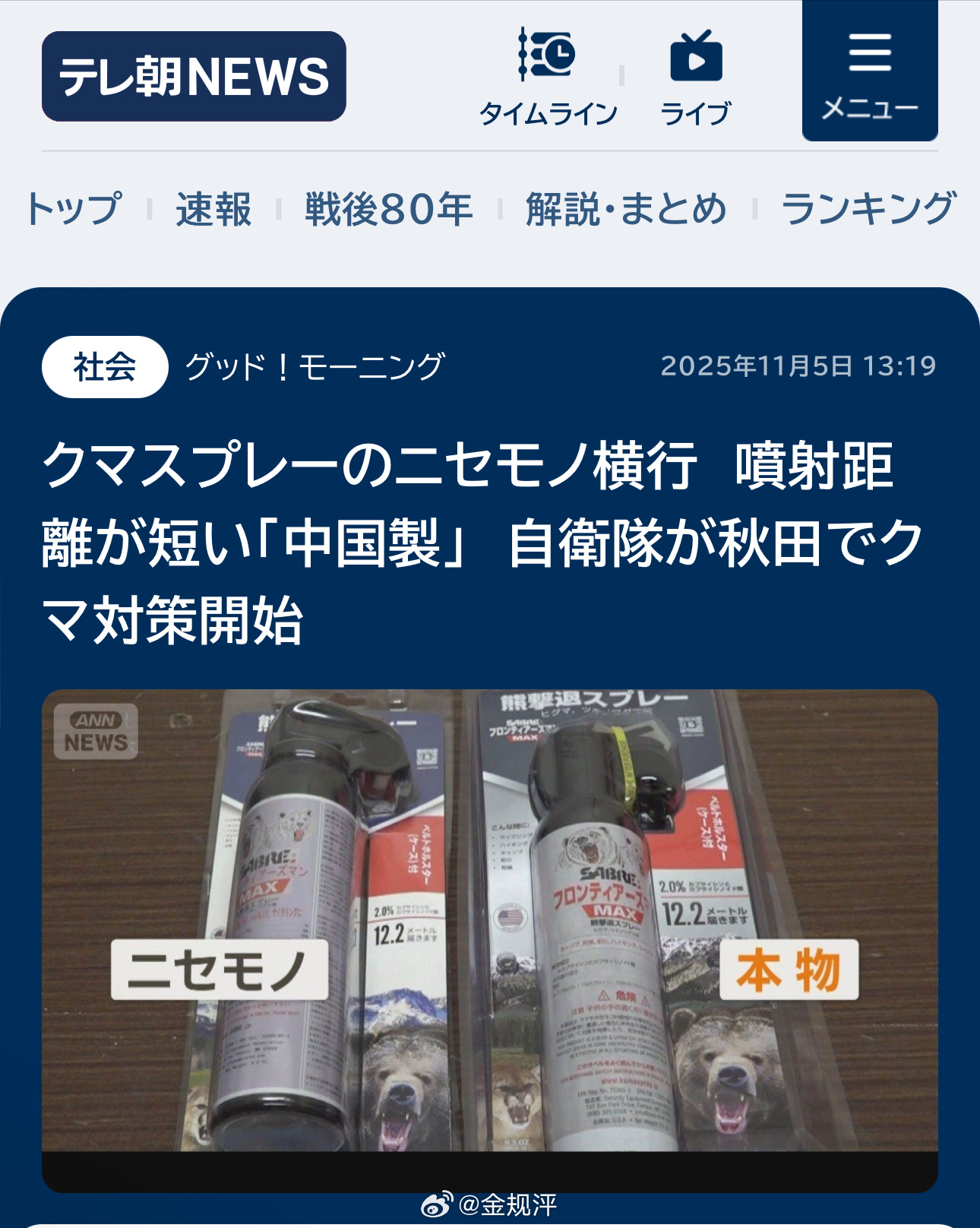 《今天份的中国操纵日本熊》:日本市场上很多驱熊剂是中国做的西贝货,喷射距离很短,