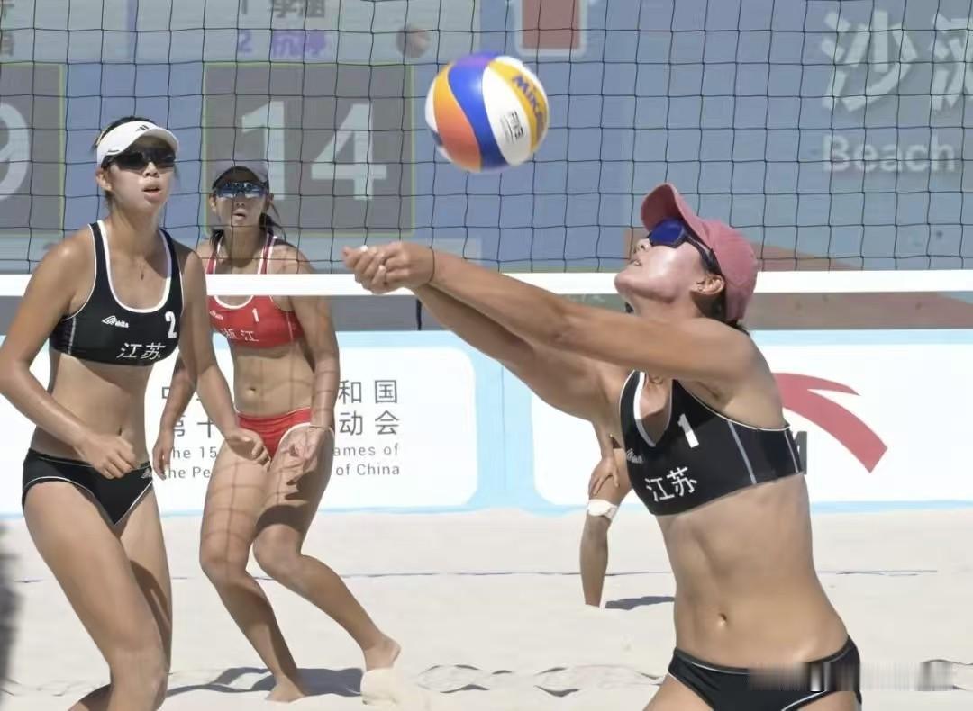 江苏女子沙排创造历史!参赛的4对组合全部杀入全运会八强。江苏一队的老将组合袁吕雯/朱玲娣以2-0击败浙江一队王凡/姚欣。江苏二队的年轻组合韩文芹/齐思语同样以2-0击败浙江二队的李涵/杭婷组合晋级八强。代表南京体院的严旭/周明利以2-1力克四川组合施芷珊/邹苧组合。而租借到广东队的于彤/蒋凯悦2-0山东二队张新晨/王嘉莹组合。至此,江苏队的四对组合皆已晋级八强。