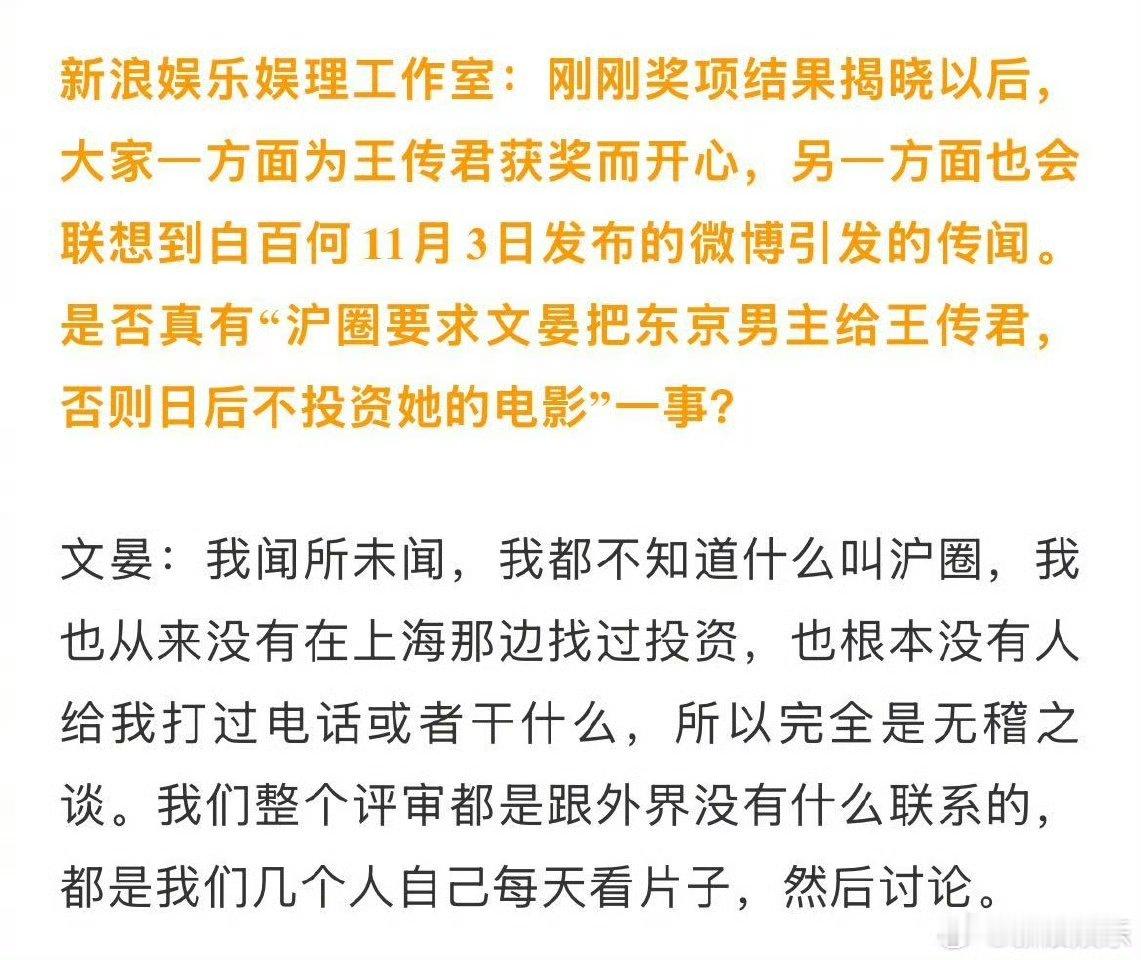 文晏回应网友疑问文晏说不认识白百何文晏说不知道什么是沪圈,奖也不是撕来的