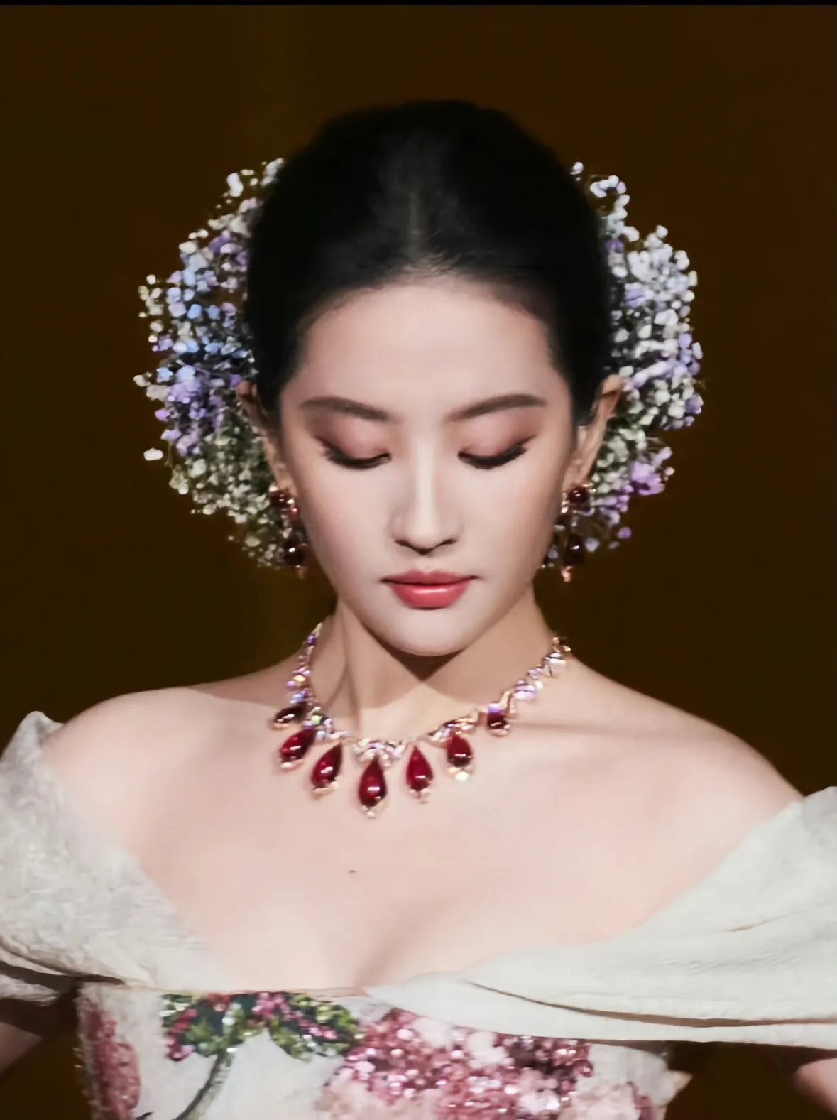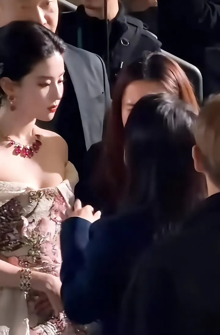刘亦菲把死亡玫粉穿出了定制款的感觉,这种颜色普通人穿上分分钟黑三度,她居然能穿出