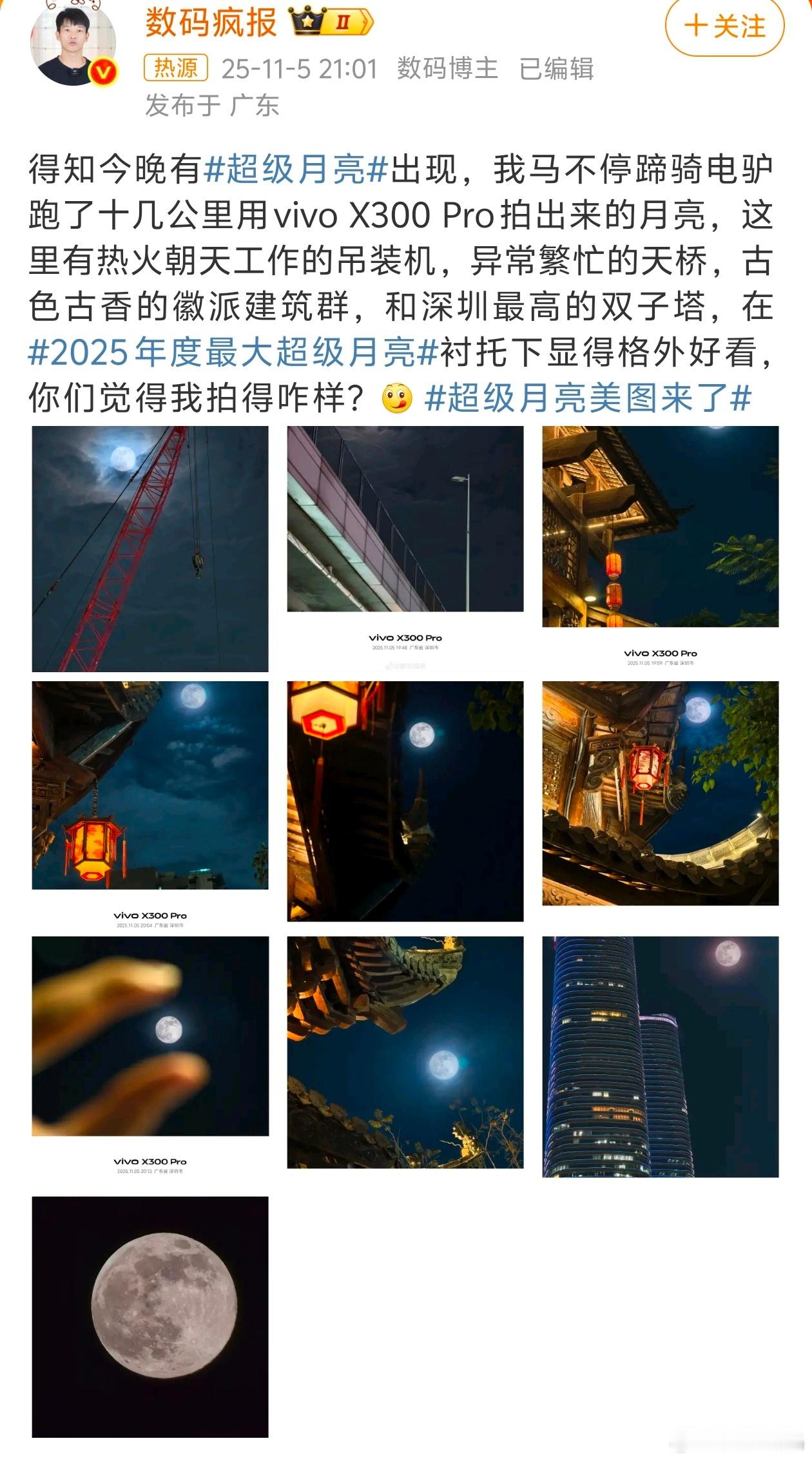 vivox300拍到了超级月亮 vivoX300拍摄画质细腻,超高清,感觉月亮就在眼前。拍出来的超级月亮太美了! 说的我都有点心动了,这画质太真实了