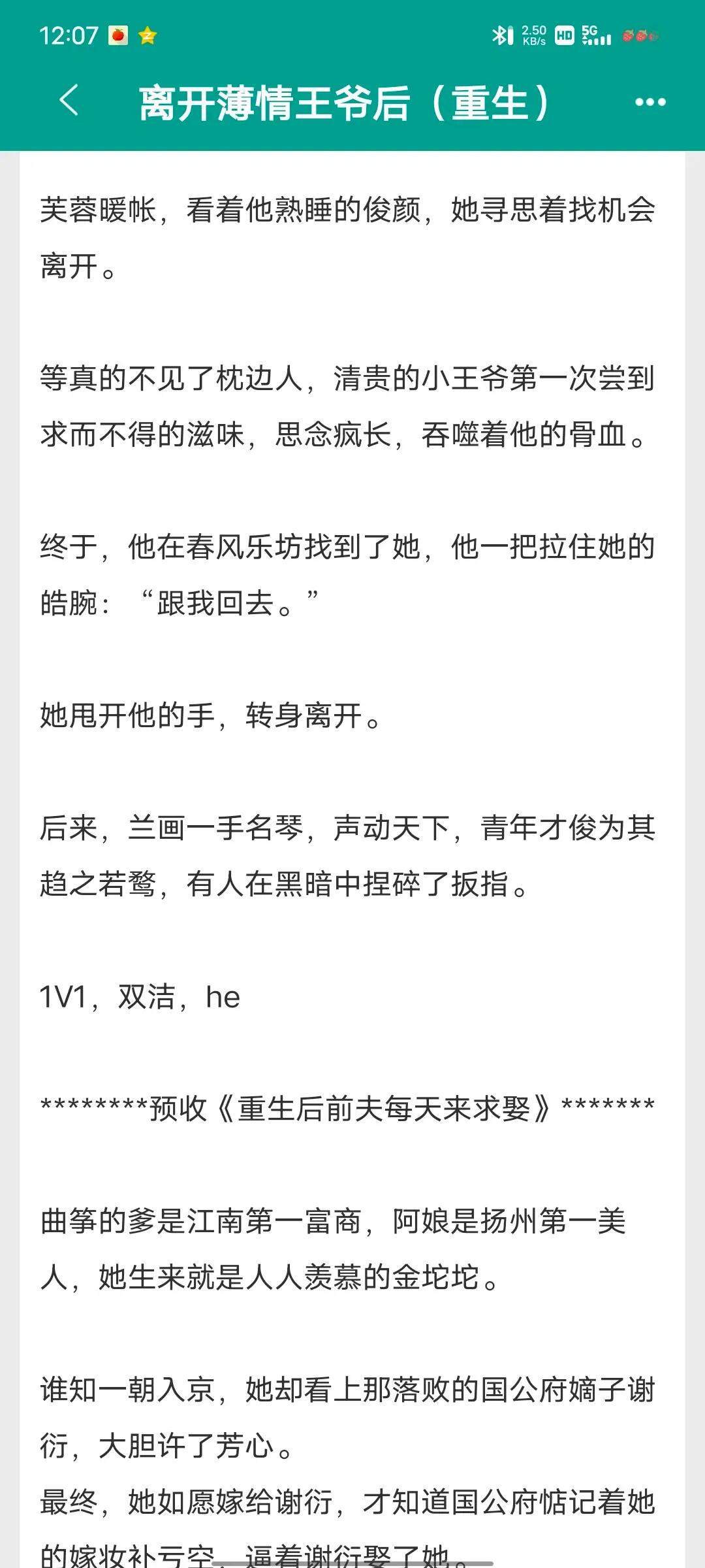 《离开薄情王爷后》by轻舟泛晚 一年前完结的文了。文案排雷如图。男主是王爷,女主是养在他府中的贵女,he。