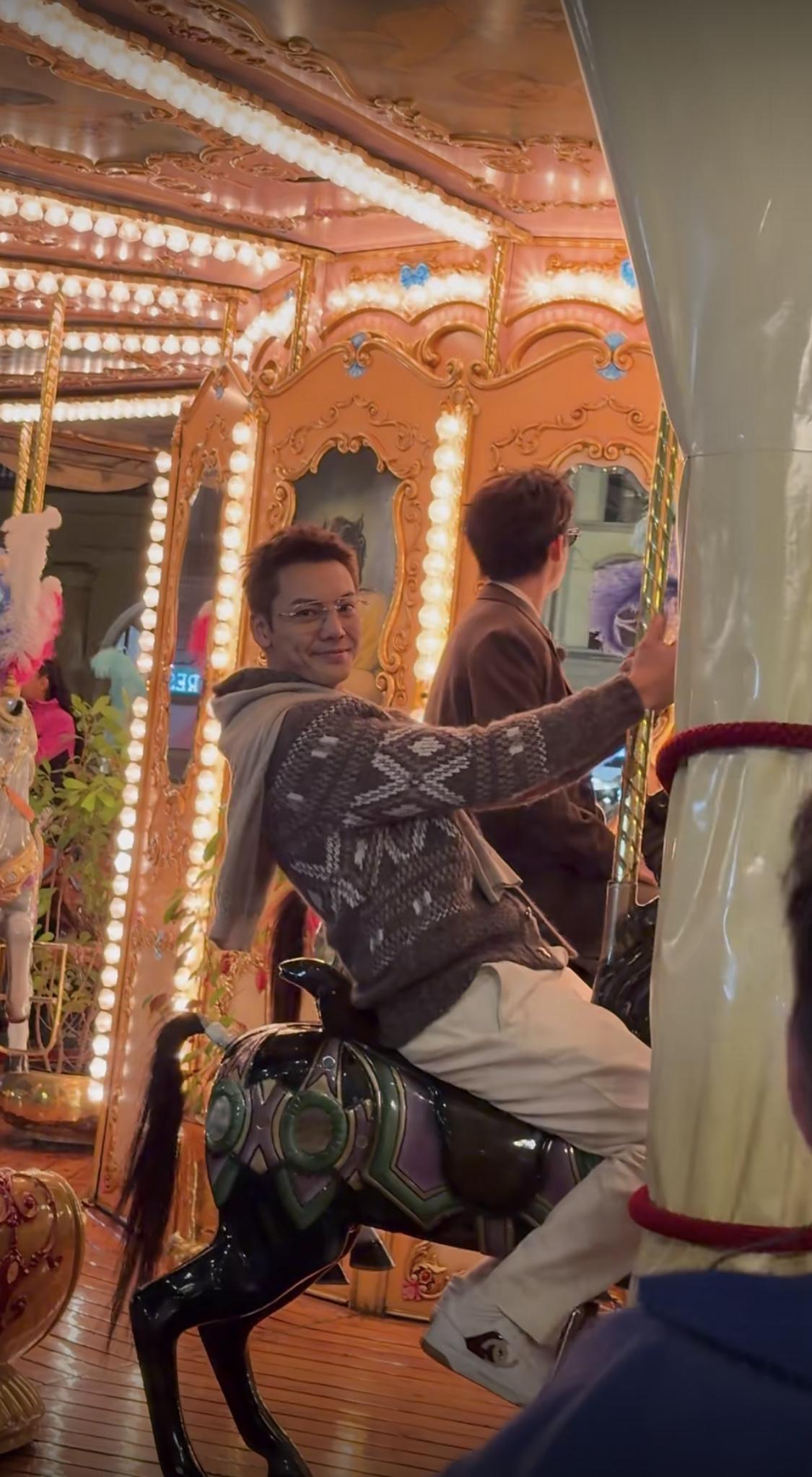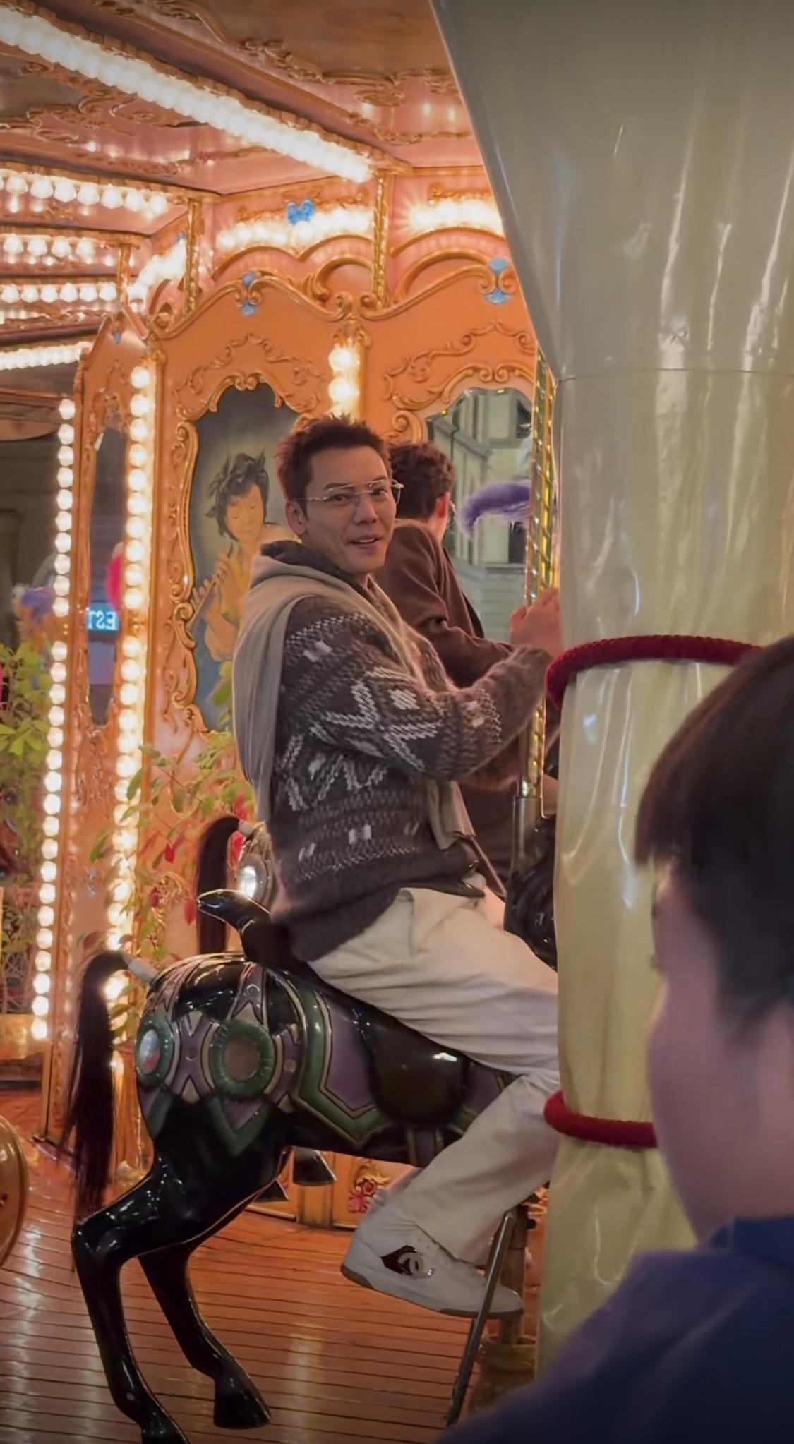 坐旋转木马把好命哥开心的,和身边的王安宇热聊,还和粉丝打招呼。 陈伟霆官宣之后,心情一直很不错。没有以前的高冷了。很容易融入新的环境。综艺中也幽默了很多。 现在的穿搭也是走老钱风格。越来越帅了。 陈伟霆