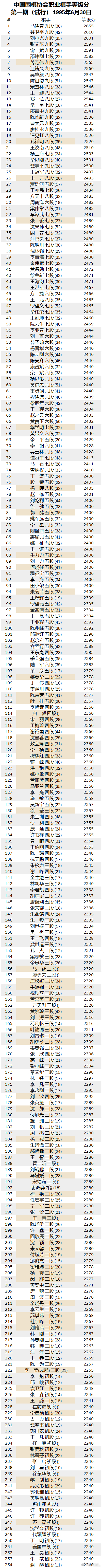 当时拥有国家段位的棋手314人,第一期等级分榜上榜254人,还有60人没有上榜。