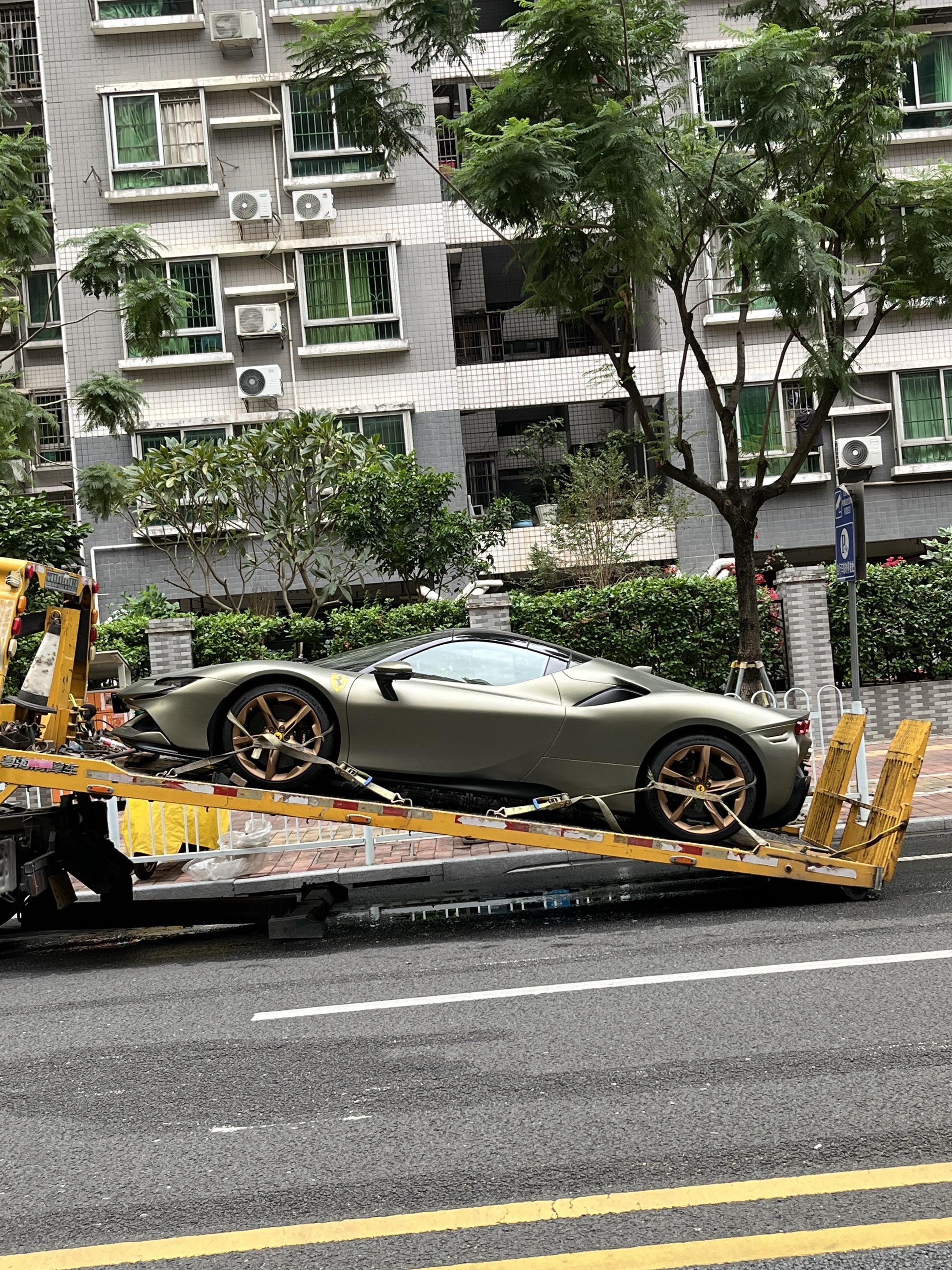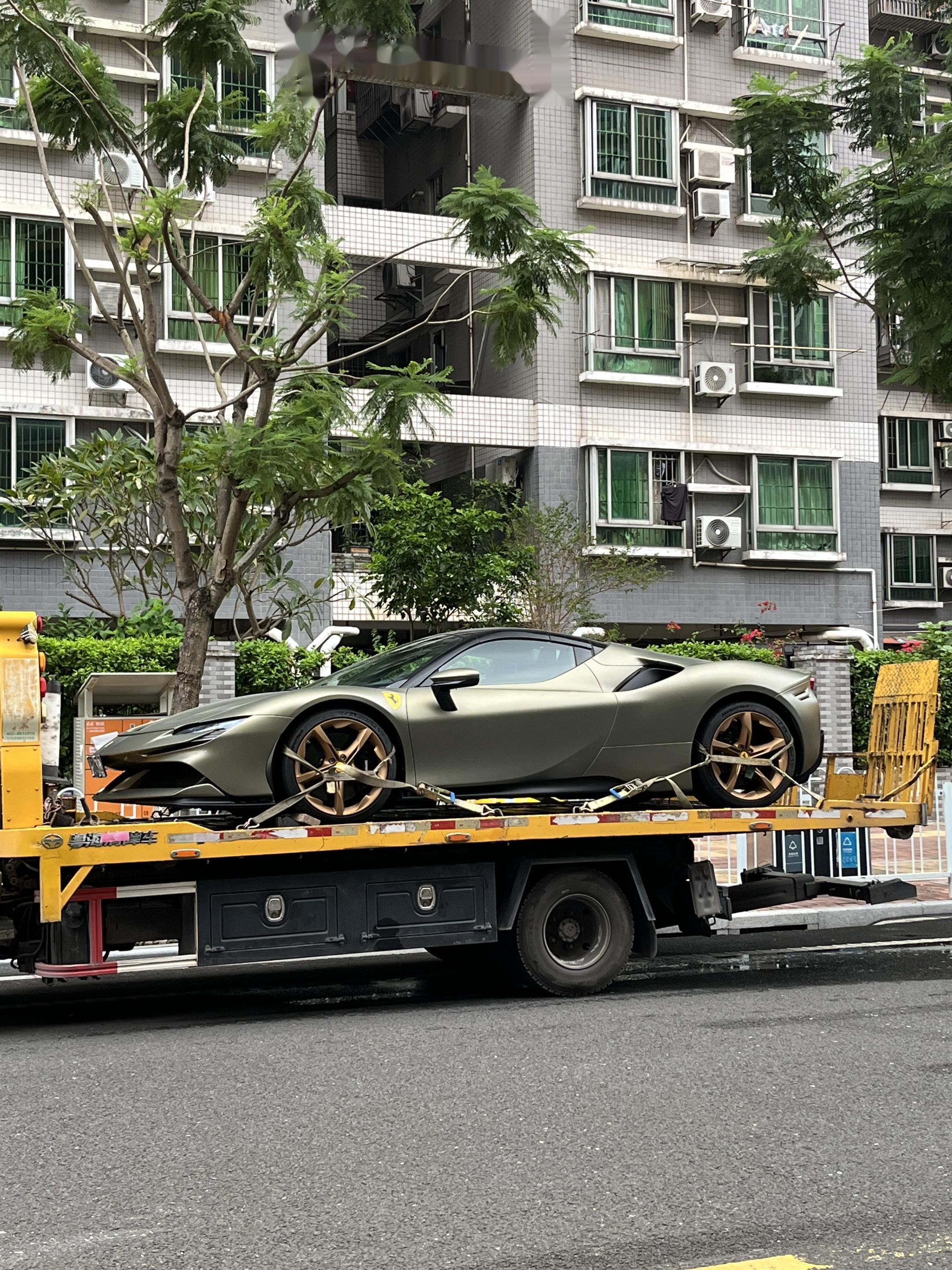 拖车上的Tailor Made哑光金绿 SF90 Spider
