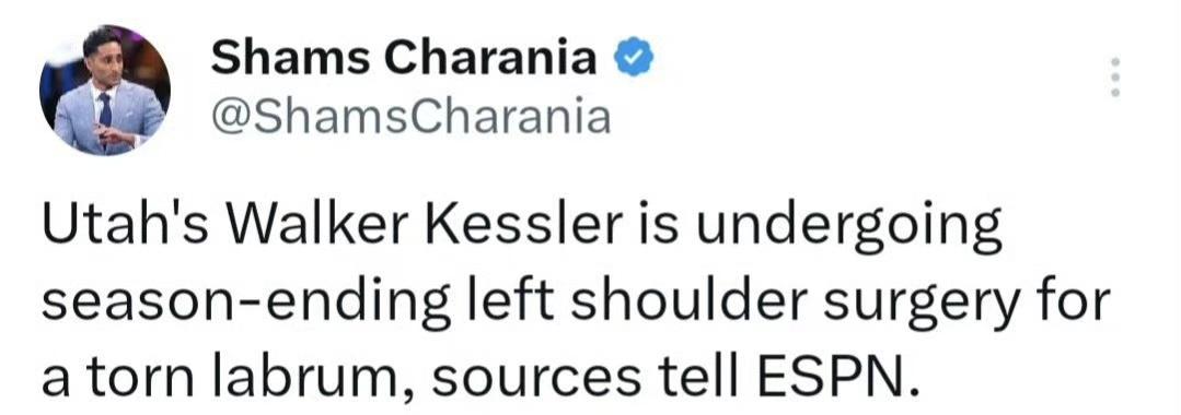 凯斯勒报销爵士可长舒一口气! 重磅消息!爵士中锋凯斯勒因左肩需要手术治疗,赛季报销!凯斯勒此前一直是湖人的追求对象,所以关注度相比其他球员要高一大截,此消息一出着实令人震惊! 今年是凯斯勒新秀合同的最后一年,但休赛期他没能与母队就续约达成一致,爵士管理层有两方面考虑,一是为了压价,二是想腾出空间瞄准自由市场随后再留人;不管如何本赛季表现对凯斯勒都极为关键,回顾其职业生涯,凯斯勒一步一个脚印,三年时间逐渐成长为顶级蓝领中锋之一,上赛季多项数据排名联盟前列,本赛季他只打了5场比赛,让人印象深刻的是其3分球场均出手4次能命中2.8个,非常有机会撕掉进攻端只能篮下吃饼的标签完成升级,拥有一流护框能力的空间型内线,且有一手策应能力,这将重新定义其价值,突遭变故实在让人惋惜! 当然,爵士管理层可就要偷着乐了,尽管手握匹配权,但就凯斯勒的高效表现,谁也无法保证休赛期是否有球队将开出预测外的报价,爵士匹配起来会相当难受;除了续约主动权被削弱外,他的个人荣誉方面也可能受挫,凯斯勒目前处在dpoy的赔率榜前10,至少非常有机会入选最佳防阵(以前获得过选票),如今其数据锁定在14.4分10.8板3助攻1.4抢断1.8盖帽,本赛季再无表现机会,相信明年它队开出超额报价的概率大大降低!万幸的是该伤病对其职业生涯不会造成影响,对于只有24岁的凯斯勒来说,算是成长路上的一次挫折,希望能尽快康复回到球场!