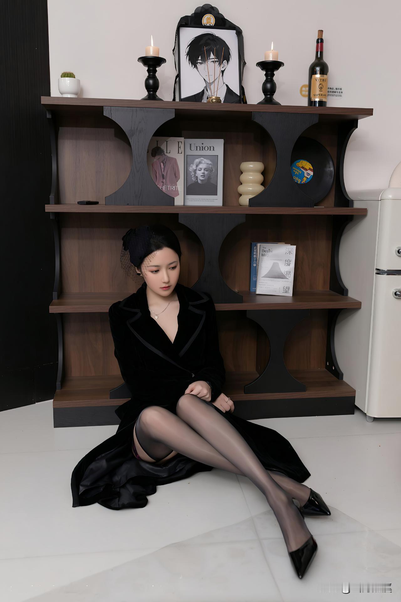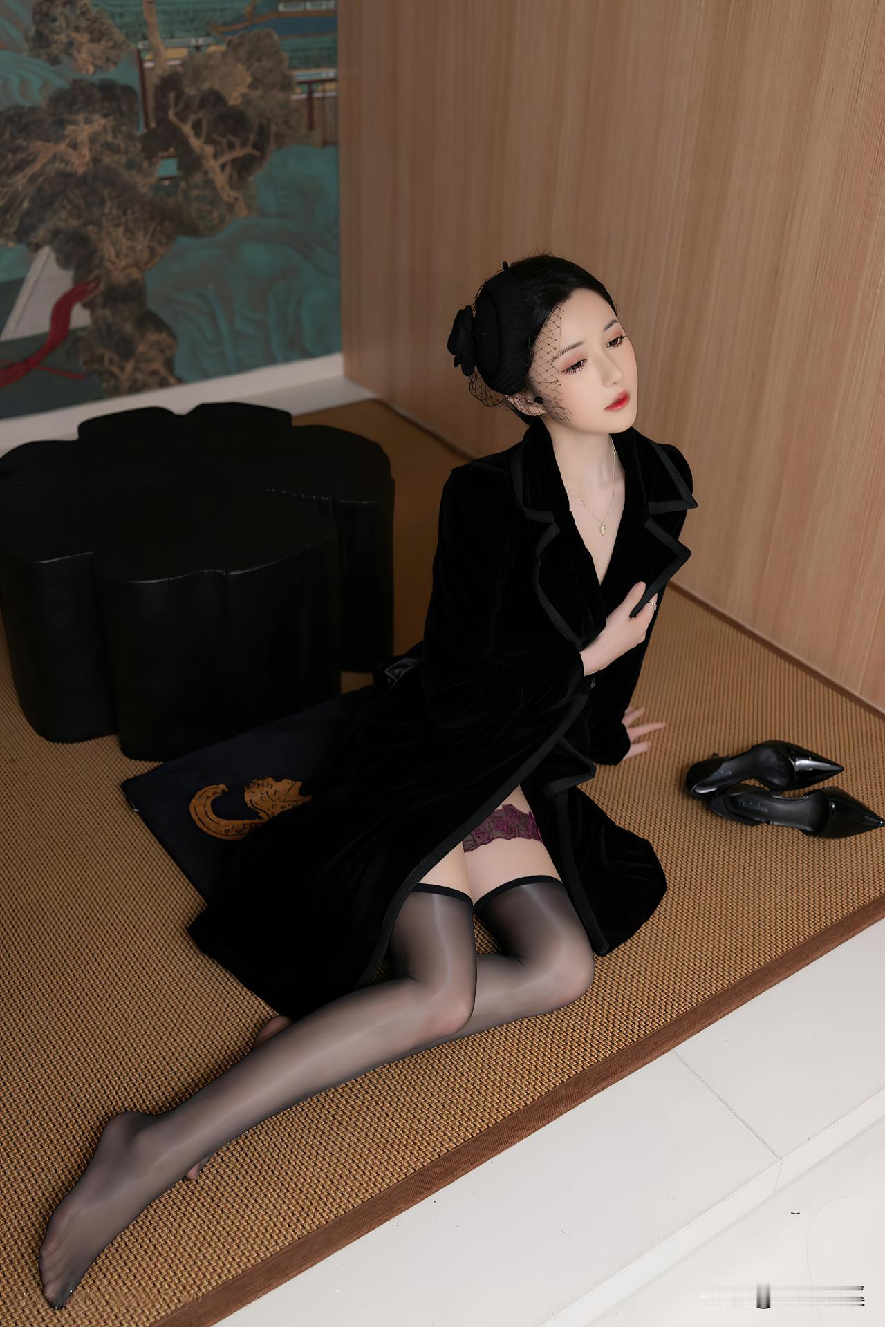 光影暧昧间,香槟裙装与黑丝的视觉盛宴,每一处褶皱都是奢华艺术