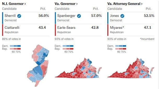总结一下11月4日美国的选举吧。主要涉及两州一市,都是民主党大胜。 弗吉尼亚,