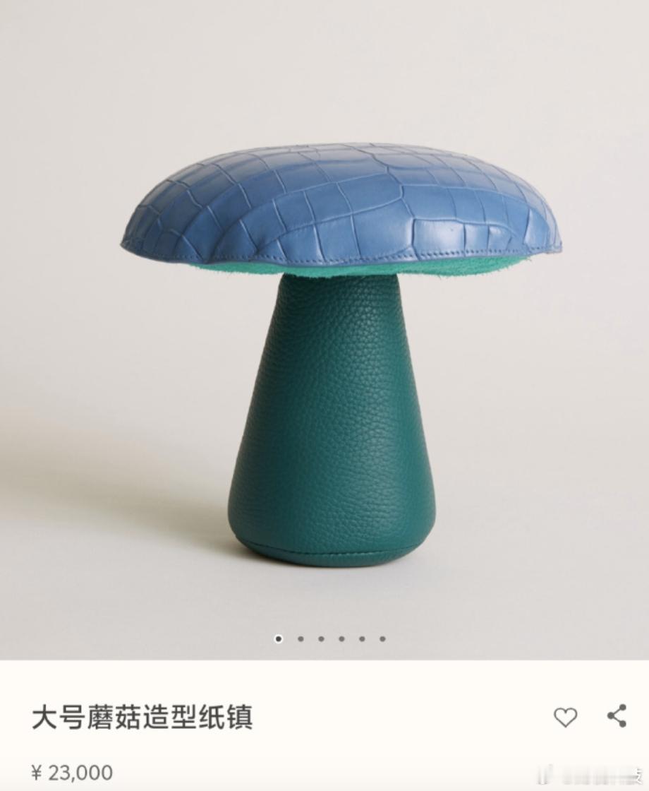 【23000元蘑菇造型纸镇被嘲蓝瘦香菇】爱马仕回应蘑菇纸镇售价23000元 近日,有网友发帖称,在爱马仕商品中看到一款售价23000元的大号蘑菇造型纸镇,直言“吃相不要太难看”,更有网友戏称其为“蓝瘦香菇”。《贵圈》栏目查询爱马仕小程序发现,该产品由法国制造,由湾鳄皮、小公牛皮和小牛皮搭配制成,产品嵌有玻璃与聚苯乙烯圆珠,增添了柔韧性,可根据需求移动。该产品高18厘米,直径为21厘米。
