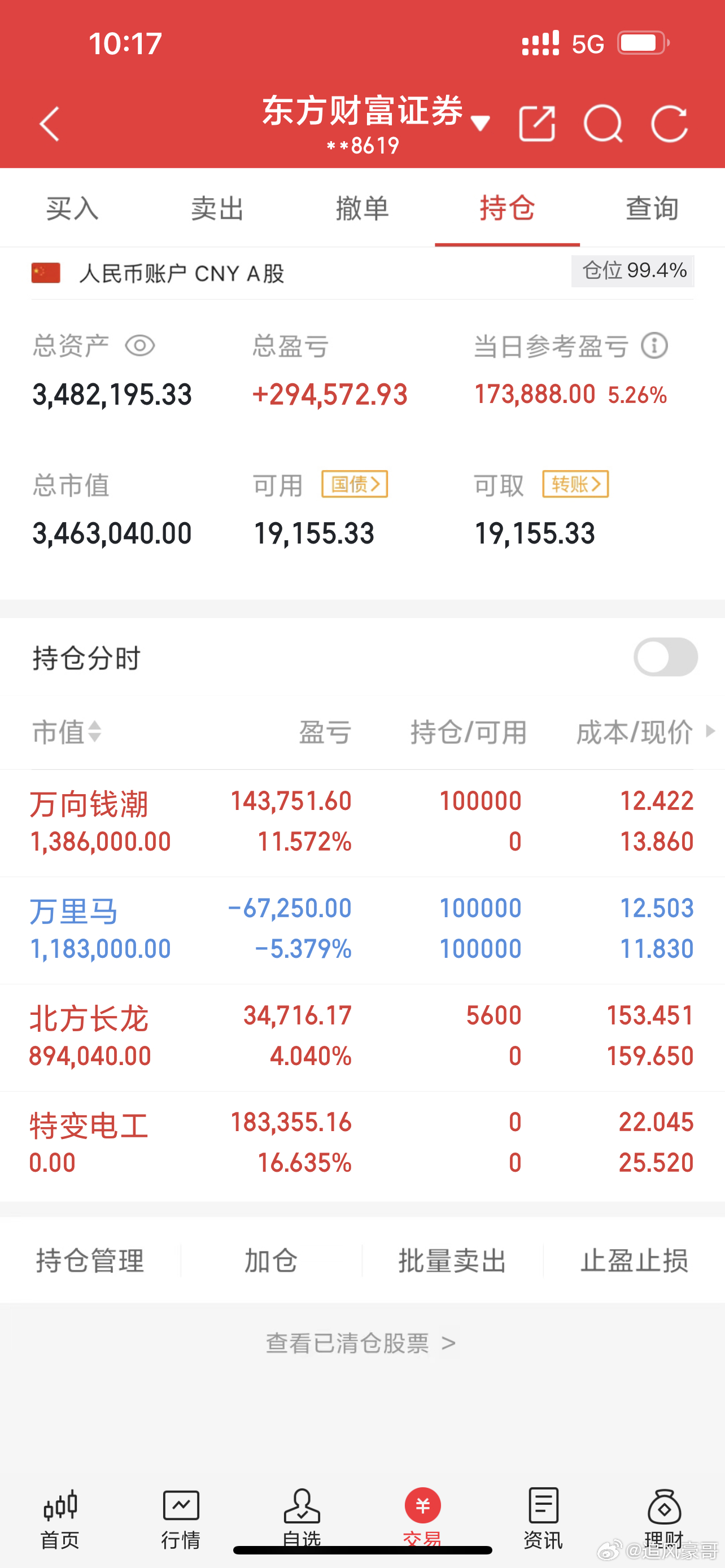 今日买入 :万向钱潮,北方长龙