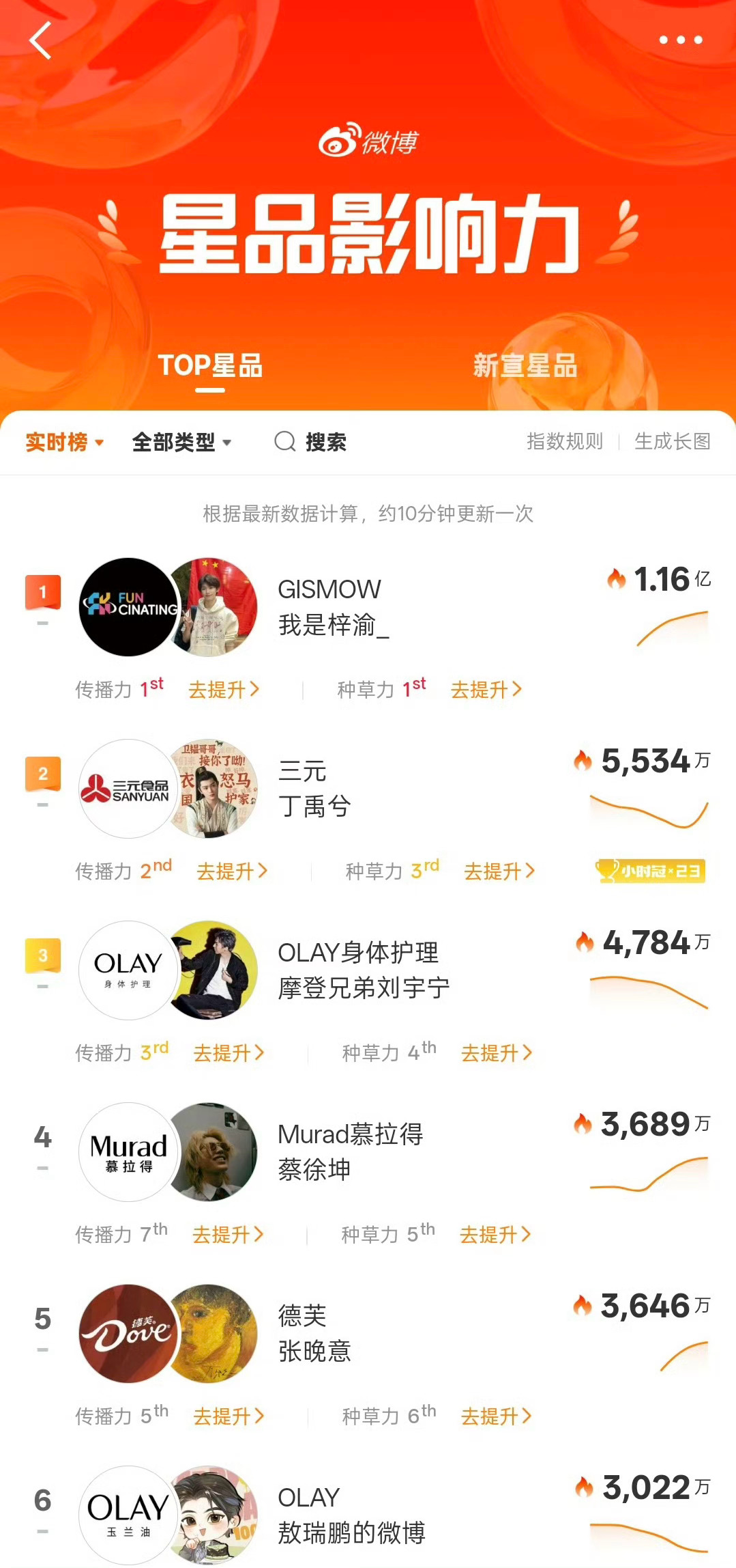 梓渝新个人代言一出半个小时星品影响力破亿📊