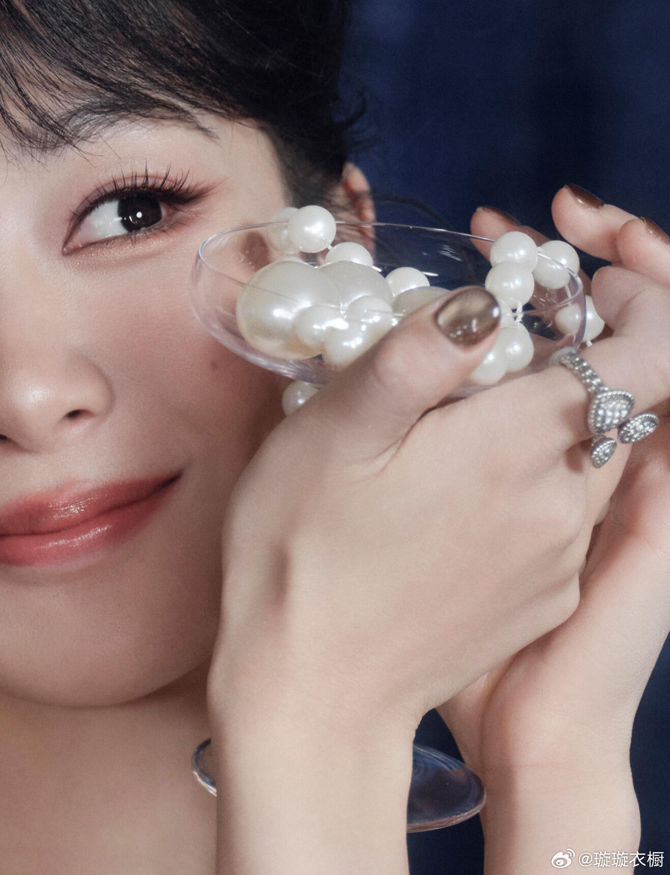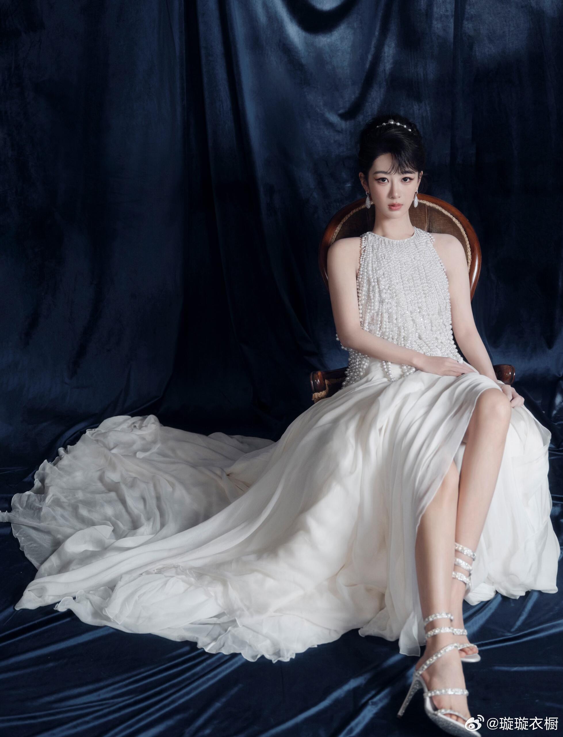 杨紫珍珠高定紫妹生日大片美翻了!Georges Hobeika高定礼服缀满珍珠,搭配Boucheron珠宝,温柔贵气并存,光芒四射!