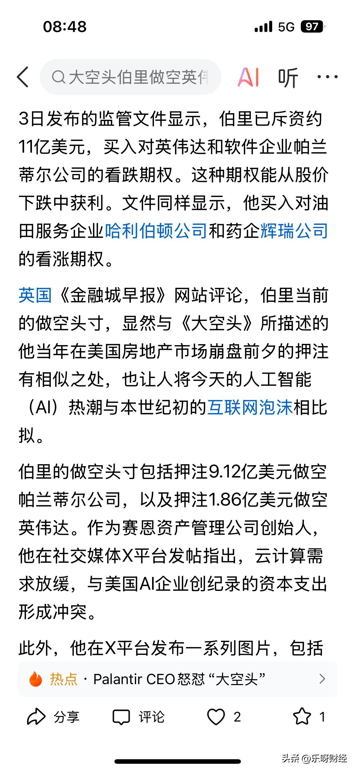 5万亿美元市值的英伟达被做空,国际知名空头伯里押注1.83亿美元做空英伟达,理由是企业云计算需求放缓,以及AI创纪录的资本支出形成冲突,而后者正是英伟达业绩屡创纪录的根本推手。 5万亿美元市值几乎等于1/3的A股巿值,需要多少的净利润才能维持如此庞大的市值,1000亿美元或2000亿美元?个中有多大泡沫估计大多数人都清楚,靠讲故事肯定难以为继。英伟达丢失了国内货真价实的市场,高端GPU芯片的市占率从95%下跌至零,已经成了英伟达之痛。 估值高企,这无形中亦给囯内半导体上市公司的走势带来不利影响!