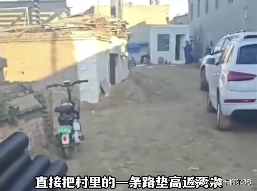 这村长怕不是村霸吧?修路修得村民家快成鱼塘了! 当村长的,不为村民谋福利就算了,为了自家厂子让大车好走,直接把村里的路垫高快两米!村民家门被堵了一半,土堆都快跟墙齐平了,再堆堆怕是房子都要被埋了。 条件好的村民只能把自家地面也垫高,就这还得忍气吞声。条件差的就惨了,本来房子就矮,再垫高怕是一抬手就摸到房顶了。 现在村民出门只能靠走,骑个电瓶车得两个人使劲推才能上马路。干农活的三轮车直接被堵在家里,想出都出不去。 谁要是敢有意见,村长就开着他的霸道车堵人门口,甚至把人家自来水管都挖断。有村民女儿想去理论,结果被四个大汉给打了。 遇见大雨天别人家那不成鱼塘了,对此你怎么看?