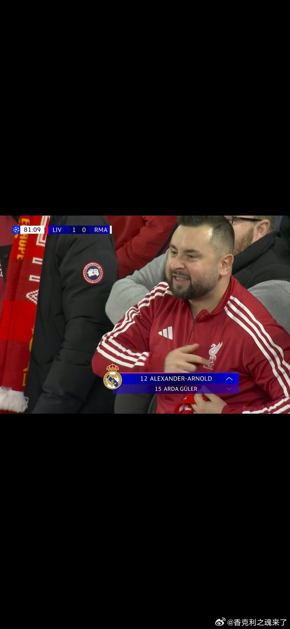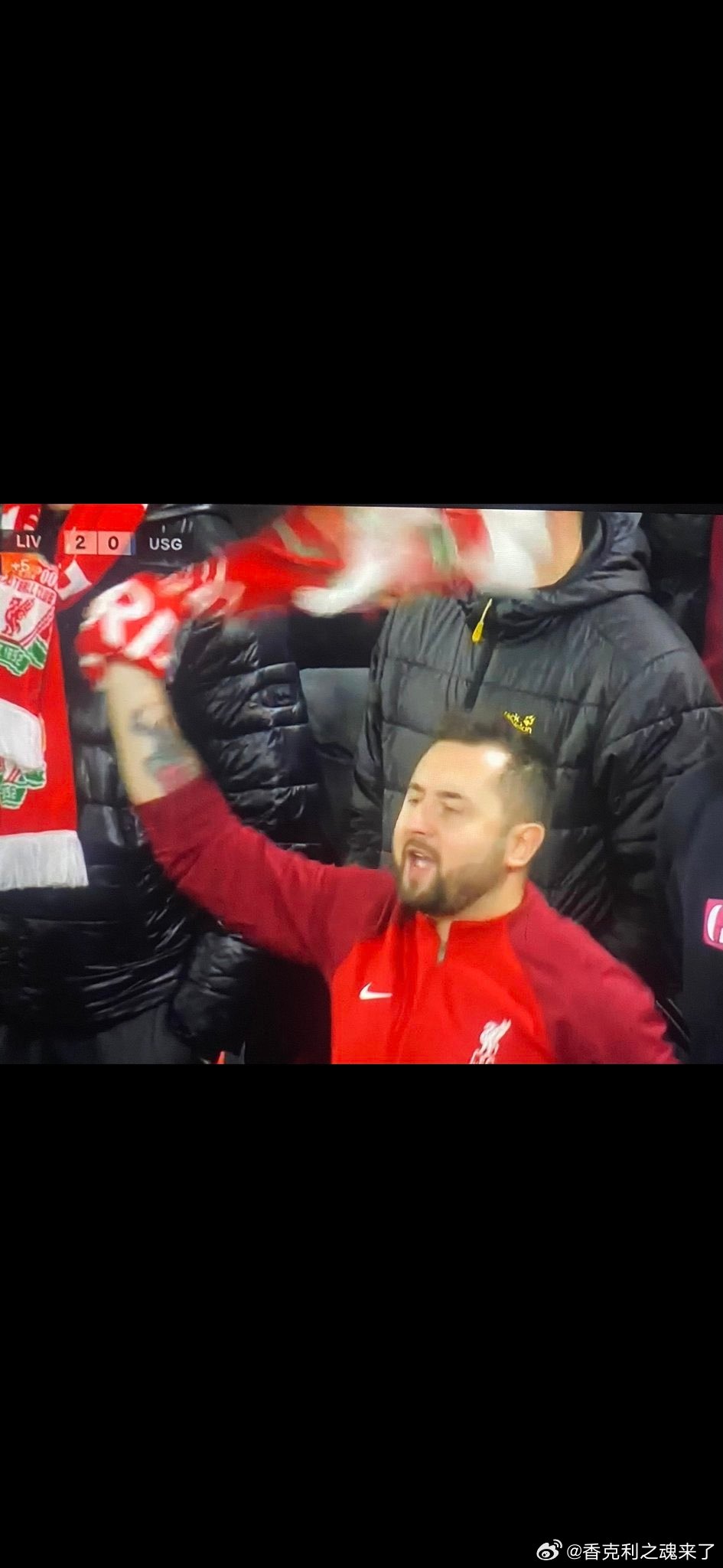 果然利物浦的忠实粉丝。。出现在每个转播镜头