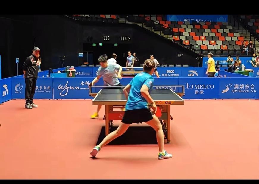 孙颖莎澳门第二练, 今天是与北京队的李雅可一起训练。 莎莎与雅可虽然不是同一个省队, 但他们都是邱贻可门下弟子, 与孙颖莎关系也比较好, 雅可小姑娘也瘦了不少。 全运会都在全身心的投入, 孙颖莎加油!