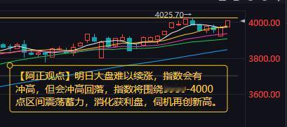 【11月6日收评:明日大盘难以续涨 指数会有冲高 但会冲高回落 指数将围绕3980-4000点区间震荡蓄力】 盘前分析“能否持续放量是决定反弹高度的关键”,午评“午后大盘大概率会有震荡回落,尾市将再度冲高,全天维持在4000点之上收盘”判断准确:市场全天震荡走强,沪指放量涨近1%重回4000点。沪深两市成交额20553亿,较上一个交易日放量1829亿。个股涨多跌少,参与今日交易的沪深两市5154只个股中,2827只收红,涨超9%个股93只。 全天市场热点快速轮动,板块角度看,化工板块集体爆发,云天化等多股涨停;燃气轮机概念持续走高,三角防务等多股涨停;电网设备板块延续强势,摩恩电气一字涨停晋级3连板;电解铝概念表现活跃,中国铝业等多股涨停;AI硬件概念股震荡拉升,汇绿生态、东山精密双双涨停,寒武纪涨超9%;旅游板块集体下挫,冰雪产业概念股领跌,大连圣亚跌停;海南板块走弱,海汽集团触及跌停。 指数表现:沪指涨0.97%,报收4007点;深成指涨1.73%,报收13452点;创业板指涨1.84%,报收3224点。 板块表现:512个板块中,321个收红。磷化工、半导体、CPO等板块涨幅居前,海南、影视院线、旅游及酒店等板块跌幅居前。 资金表现:大盘资金全天净流出31.91亿元,其中上证净流入2.28亿,深证净流出34.19亿。 两市成交:两市全天成交20553亿元,较上一个交易日成交额放量1829亿元,上证成交9303亿元,较上一个交易日成交额放量1032亿元。 明日猜想:明日大盘难以续涨,指数会有冲高,但会冲高回落,指数将围绕3980-4000点区间震荡蓄力,消化获利盘,伺机再创新高。 我写精品,你来点赞,相互支持,携手共进。 (个人观点,仅供参考,据此操作,责任自负)