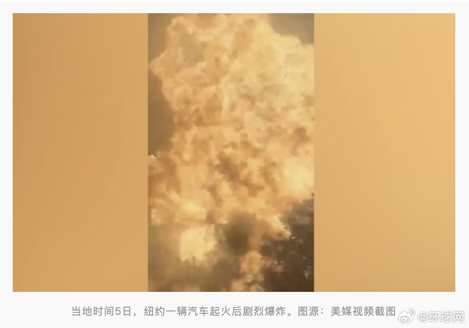 #纽约一汽车起火剧烈爆炸##纽约汽车起火爆炸致7名消防员受伤#【“巨大火球与浓烟