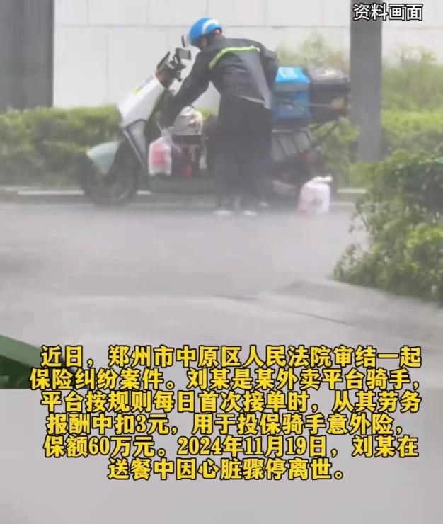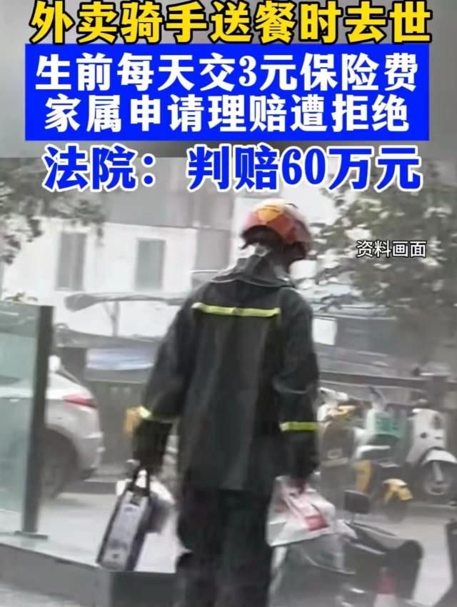 “这次保险公司输了!”郑州,外卖骑手送餐时去世,每天交3元保险费,却遭保险公司拒赔!而法院的判决,大快人心!法院:赔60万!网友:不但要理赔,还要加倍赔偿,不然他们不知道疼,只收钱不赔偿! 这起事件令人愤怒,也让我们看到了社会的另一面:那些默默奉献、用生命守护他人的普通人,竟然在最需要帮助的时候被无情拒绝。每天只需3元的保险费,本以为是一份保障,却变成了空头承诺。 外卖骑手的生命价值,难道真的只能用一个“赔偿”来衡量吗?法院的判决是正义的呼声,是对那些漠视生命、只会收钱不赔偿的保险公司的一次沉重打击。 网友的声音更是触动人心:要的不只是赔偿,更要让他们知道疼,要让那些只会赚取“保费”的公司明白,生命没有价格,责任不能缺席。我们期待,这次的胜利能成为行业的警钟,让保险行业回归初心——真正守护每一个平凡的生命。 每个人都应被尊重,每个家庭都值得拥有一份真正的安全感。只有这样,社会才能变得更加温暖、公正。