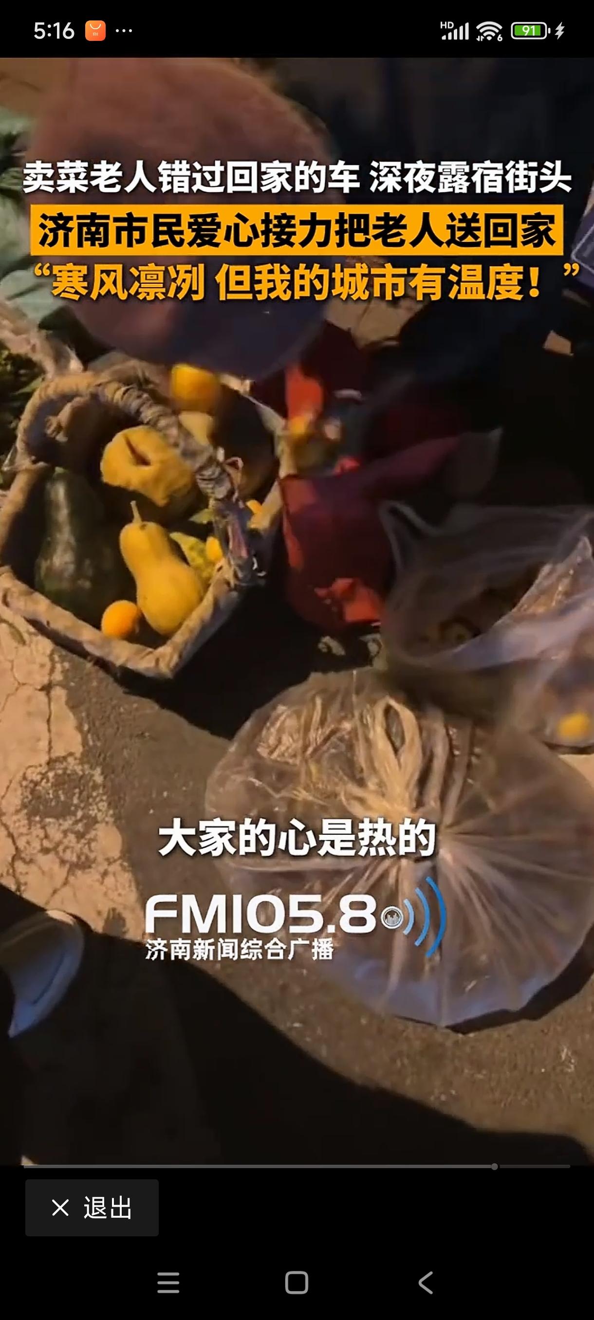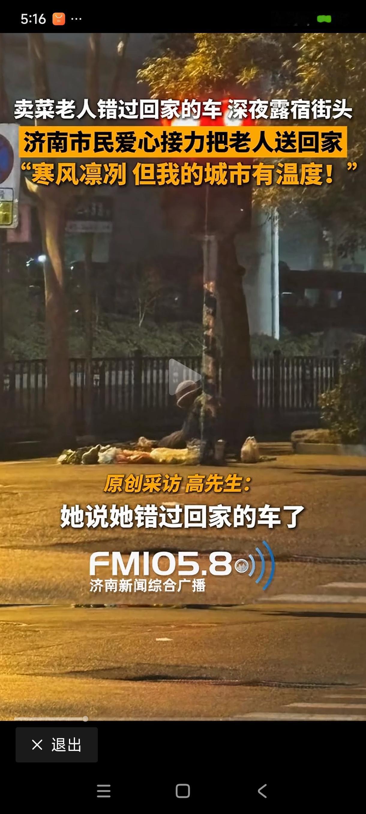 深夜十点,济南街头。一位买完菜的老人,错过了回家的最后一班公交车。寒风中,他蜷缩在站台长椅上的身影,被一位陌生路人拍下,发到了朋友圈。这张照片,像一颗投入平静湖面的石子,在这个寒冷的夜晚,激起了一场全城涌动的爱心暖流…… 朋友圈发出三分钟,第一个电话响起:“定位发我,带老人去暖和点的地方!” 出租车司机调转车头,便利店老板端出热粥,宾馆经理推开已打烊的门—— 这座城用无数双手织成一张网, 接住了那个在寒风中蜷缩的影子。 有网友翻出二十年前的照片: “当年我奶奶迷路,也是这群‘爱管闲事’的济南人送她回家。” 原来,温暖会遗传, 一座城的良心,就藏在它如何对待深夜里最微弱的光。济南七旬老人 济南黄昏 回不了家的老奶奶