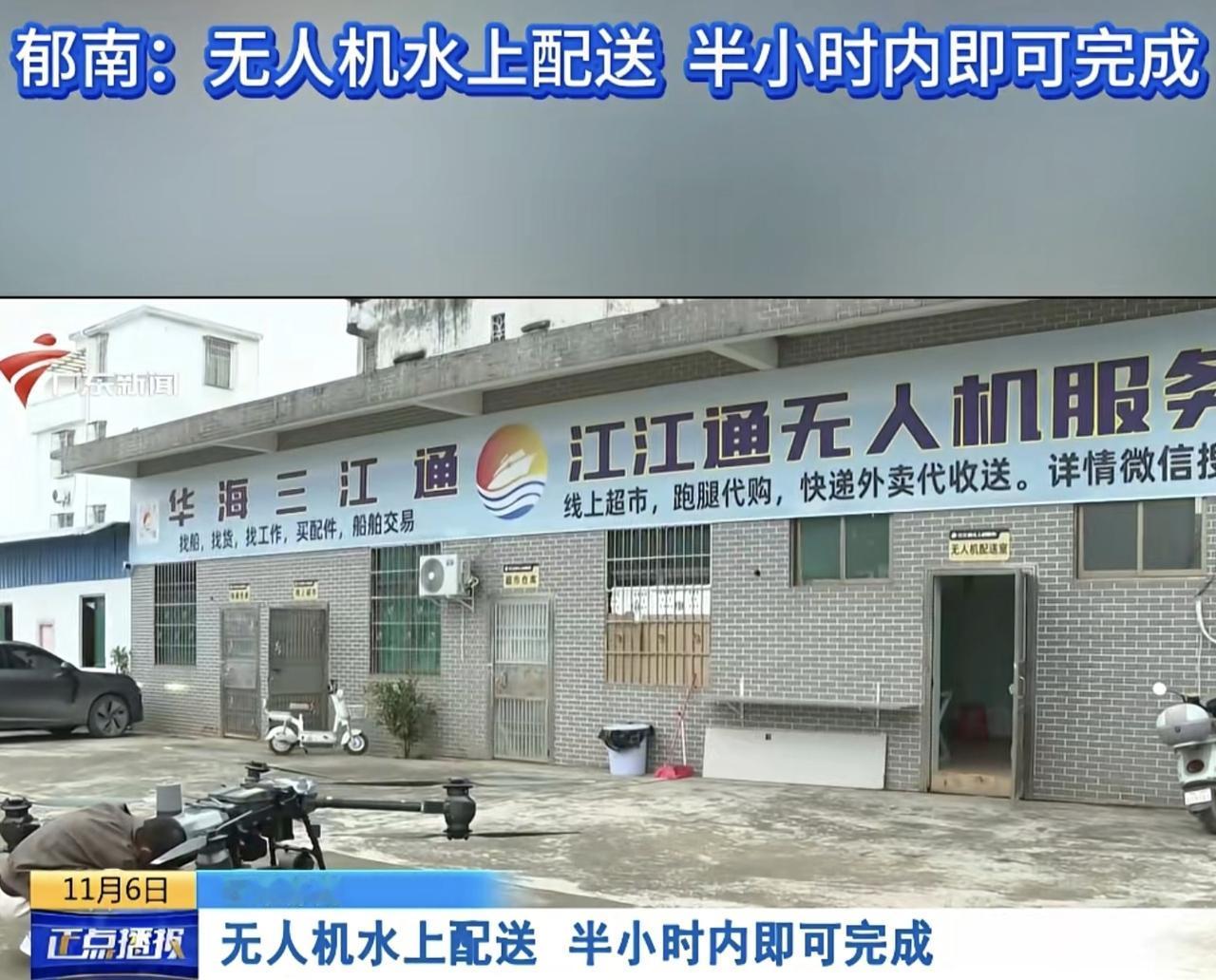 郁南县厉害了,居然也有无人机送外卖。之前去深圳玩,体验过一次无人机送外卖,觉得很高科技,但是没有想到云浮郁南这种山区小县也有这种服务。 不过郁南这个无人机送外卖不是送一般人家的,是送江上的货船。郁南靠西江,江上每天有很多货船来往,他们买东西要上岸,那就不太方便了。现在点外卖直接可以无人机送货上船,非常方便,真是科技改变生活。