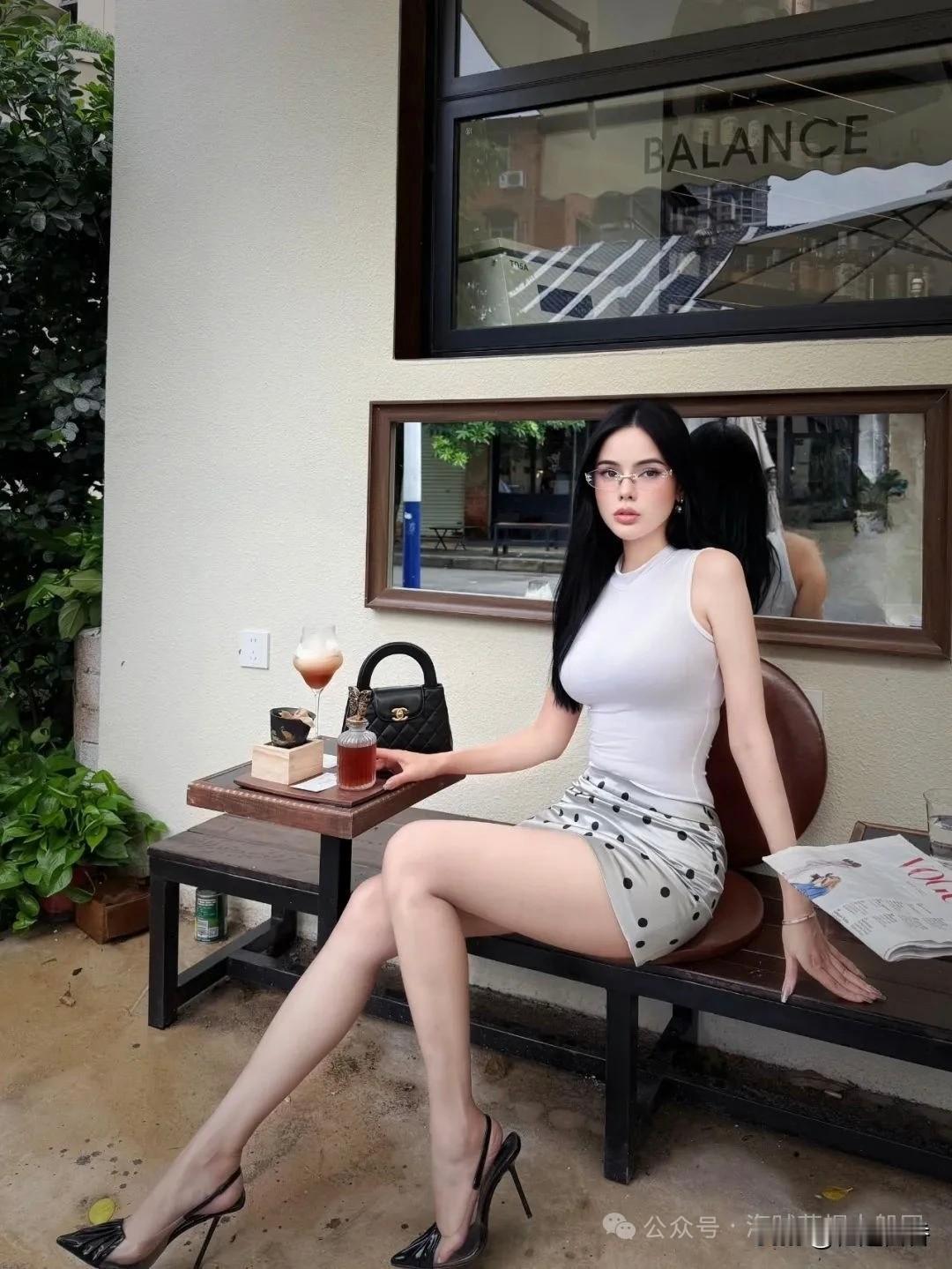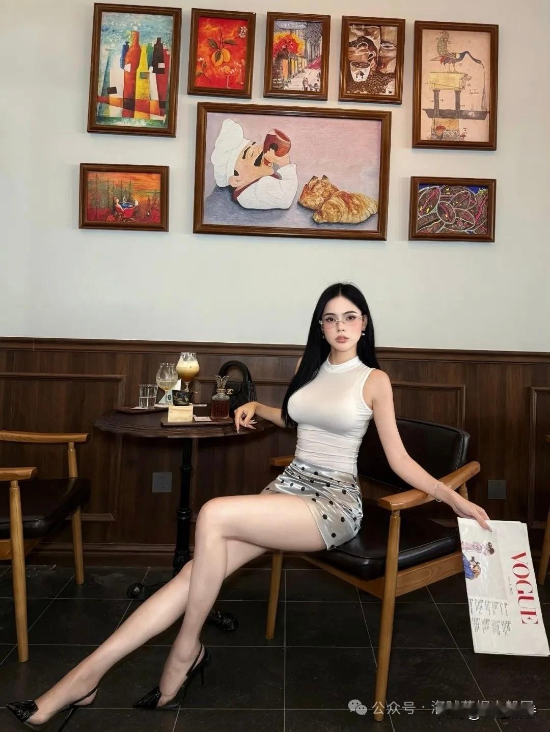 优雅咖啡馆时光,时尚穿搭与艺术画作的完美融合。