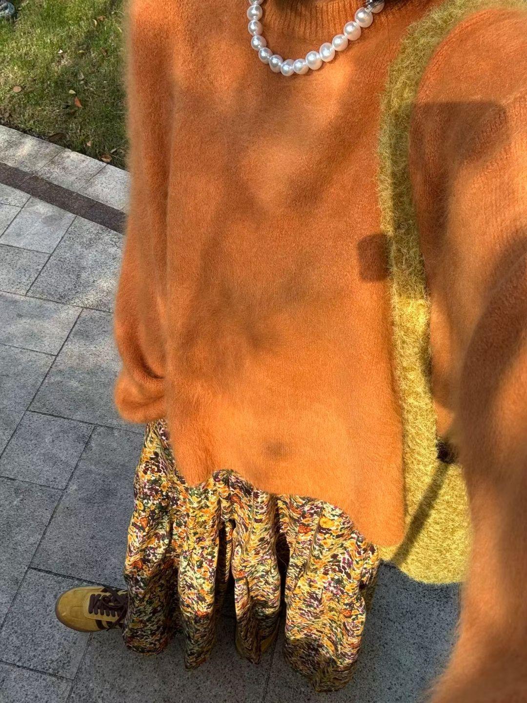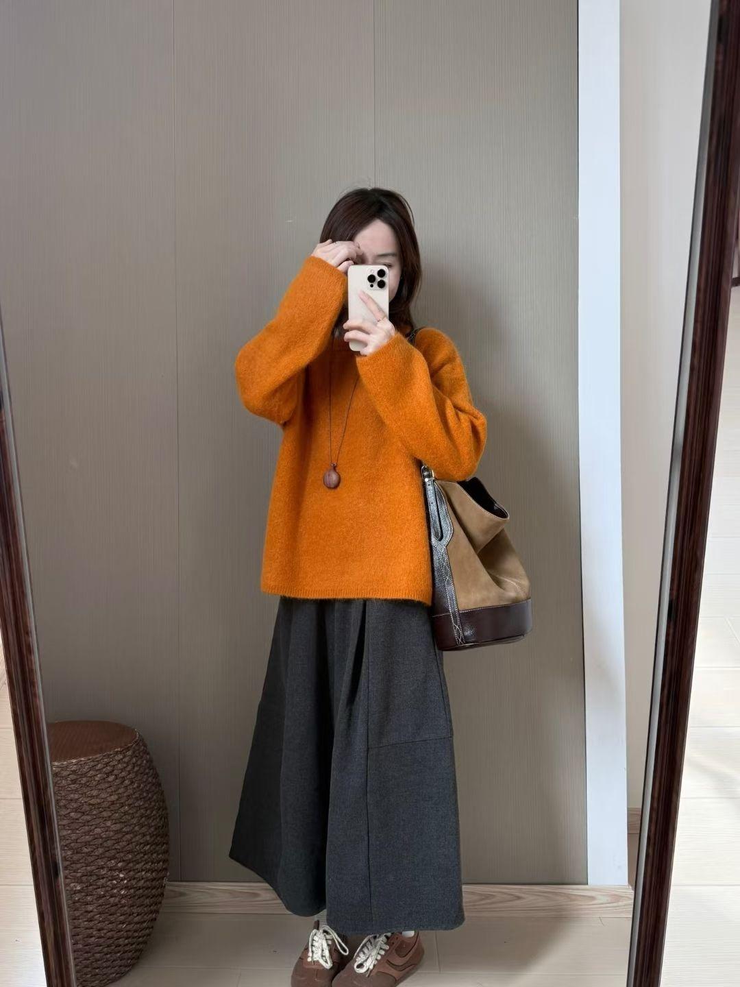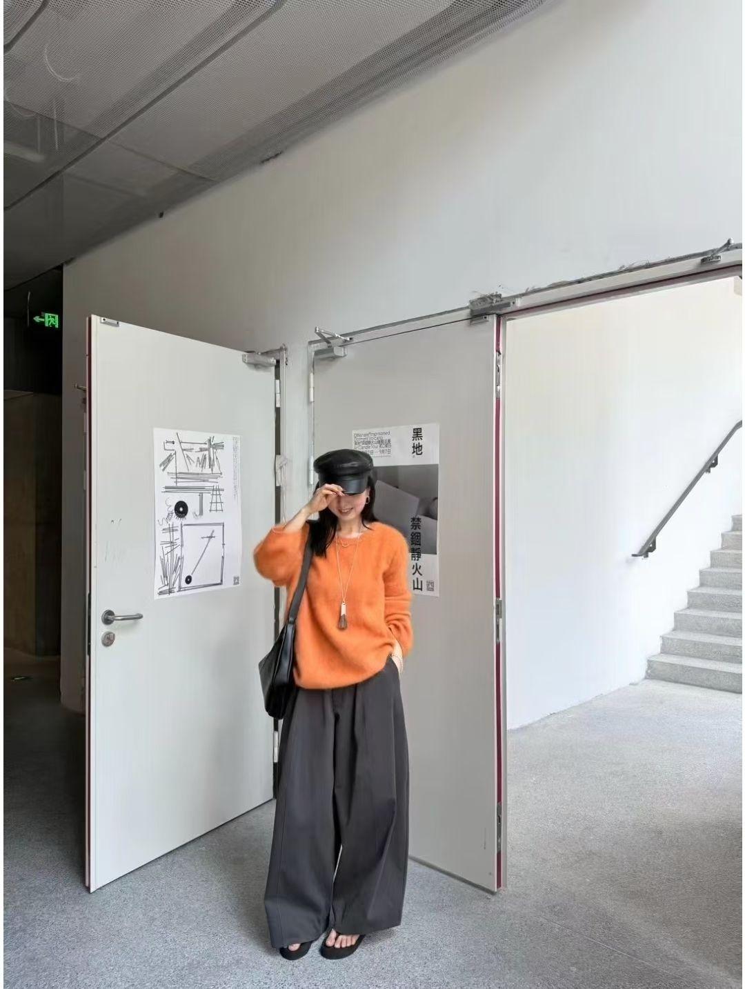 落日橙毛衣搭配白色阔腿裤,将秋冬氛围感拉满。 它的灵动在于,无论搭配裤子还是裙装,都充满生命力,轻松让人心情愉悦。 若让我越会穿,落日橙色毛衣一定是搭配修身的半裙最凸显女性的柔美,还一眼贵! 黄色毛衣穿搭 #落日橙毛衣#