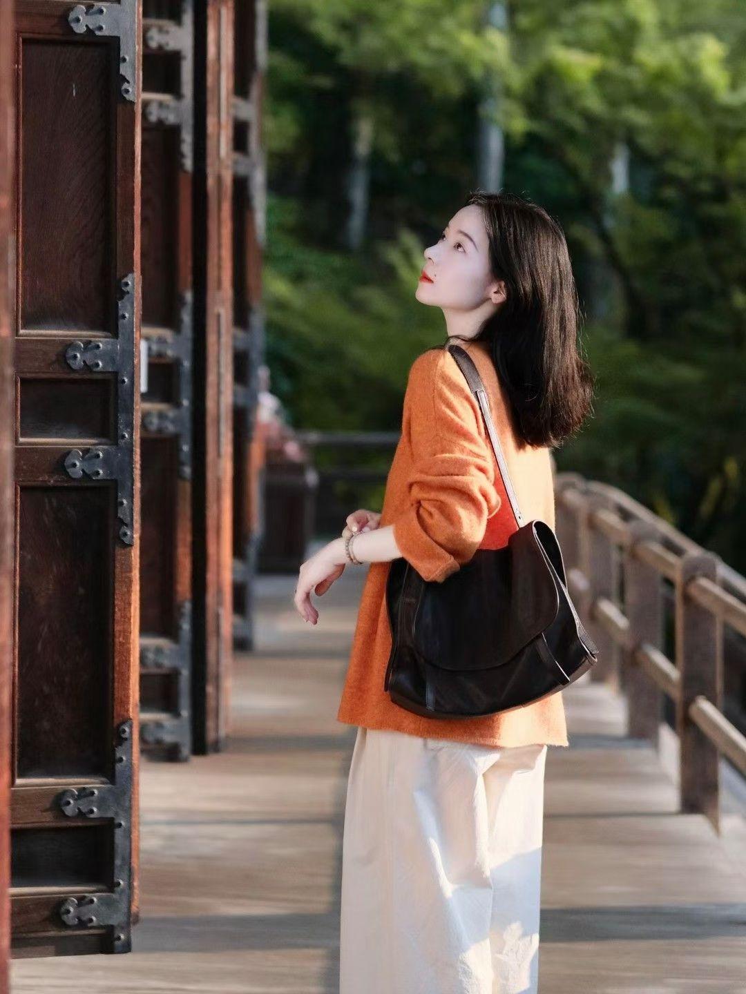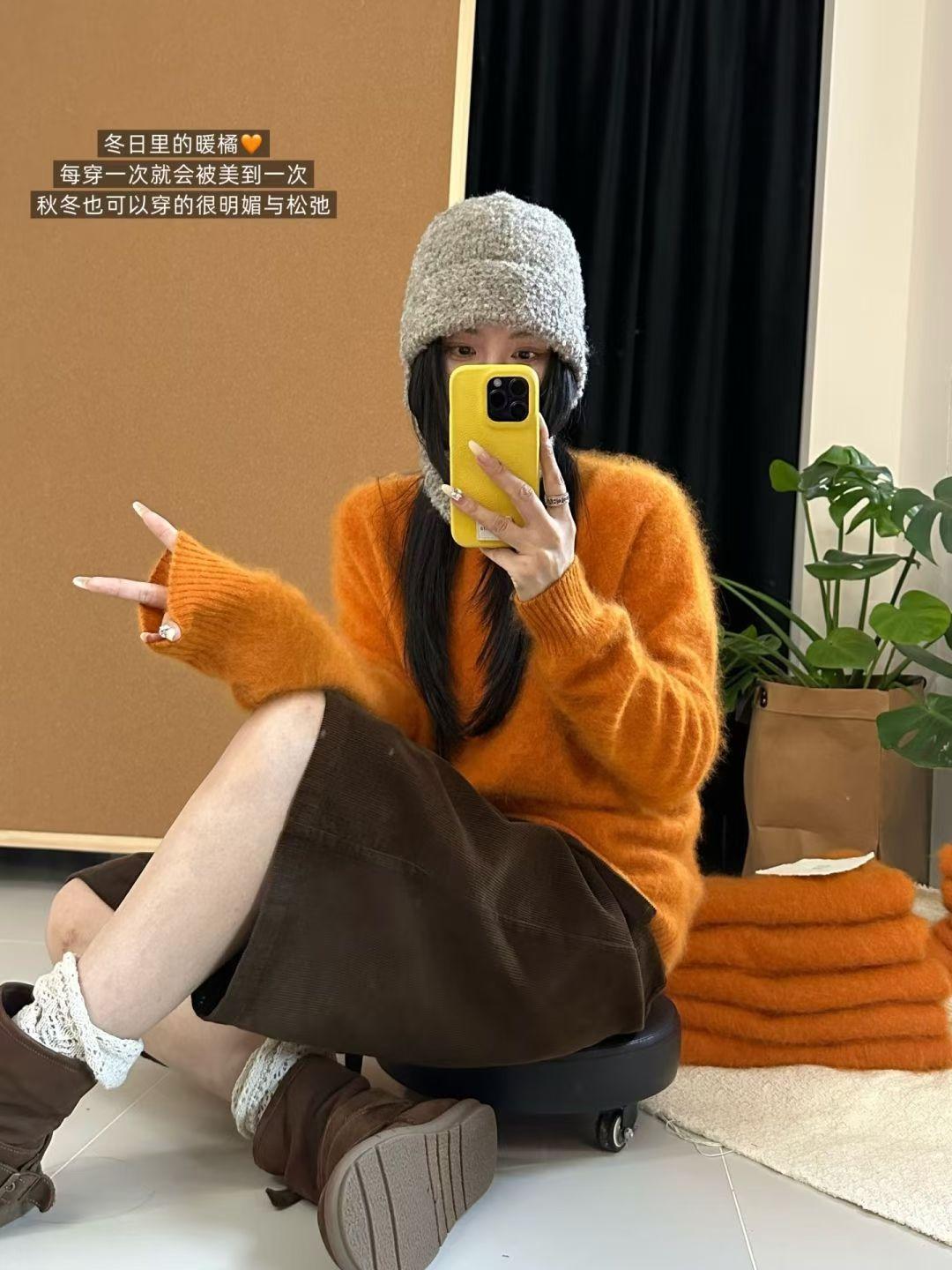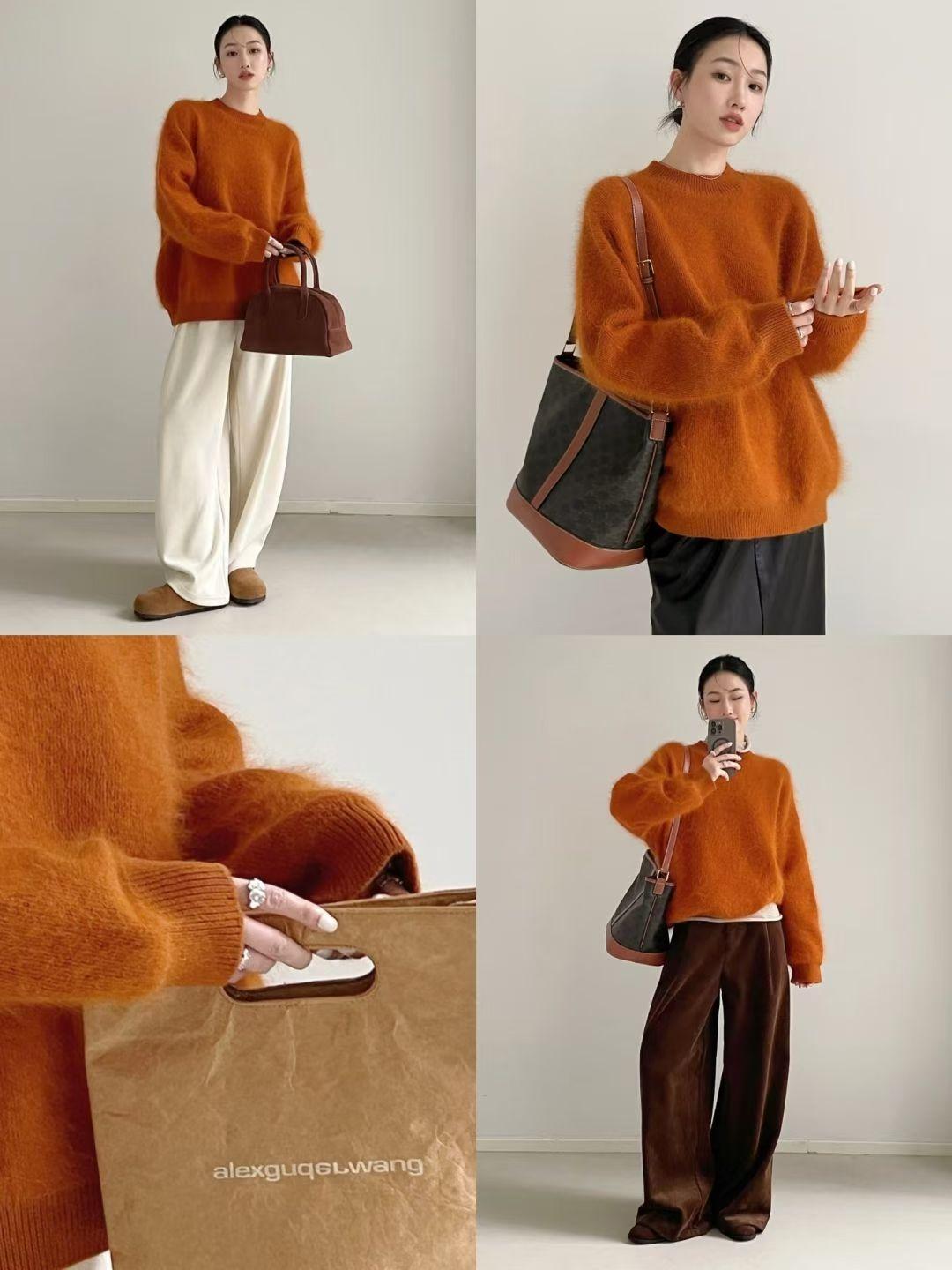 落日橙毛衣搭配白色阔腿裤,将秋冬氛围感拉满。 它的灵动在于,无论搭配裤子还是裙装,都充满生命力,轻松让人心情愉悦。 若让我越会穿,落日橙色毛衣一定是搭配修身的半裙最凸显女性的柔美,还一眼贵! 黄色毛衣穿搭 #落日橙毛衣#