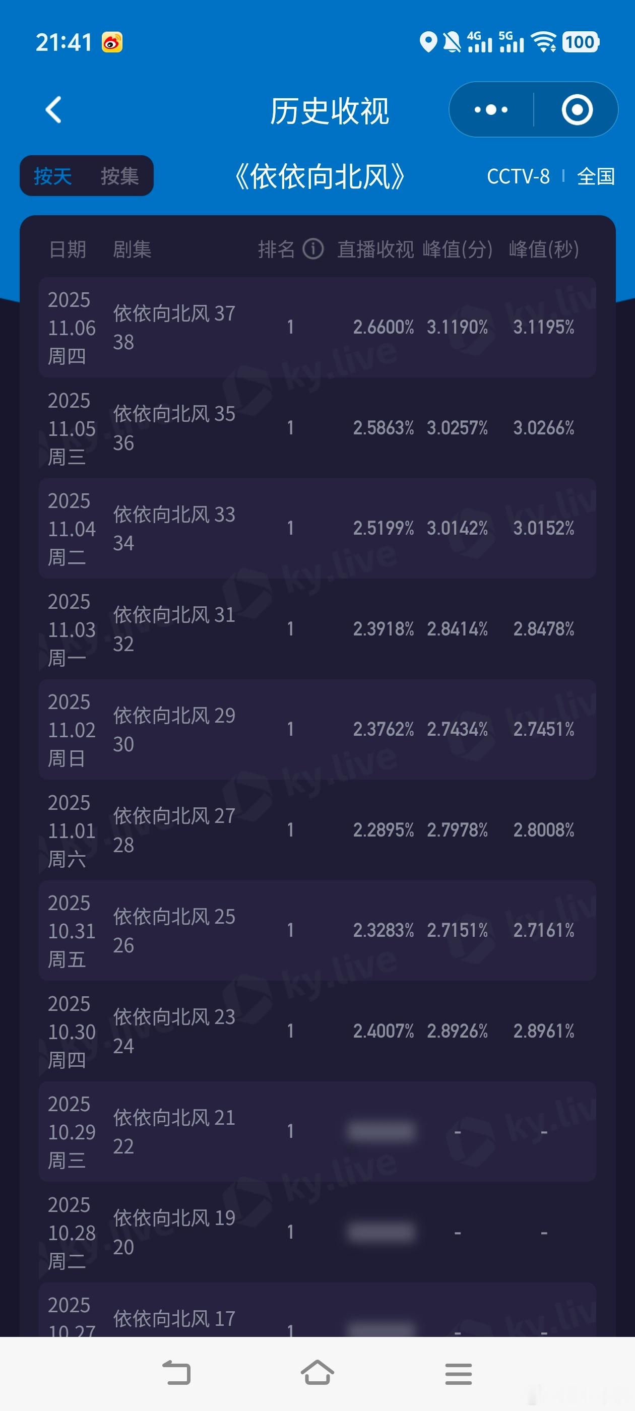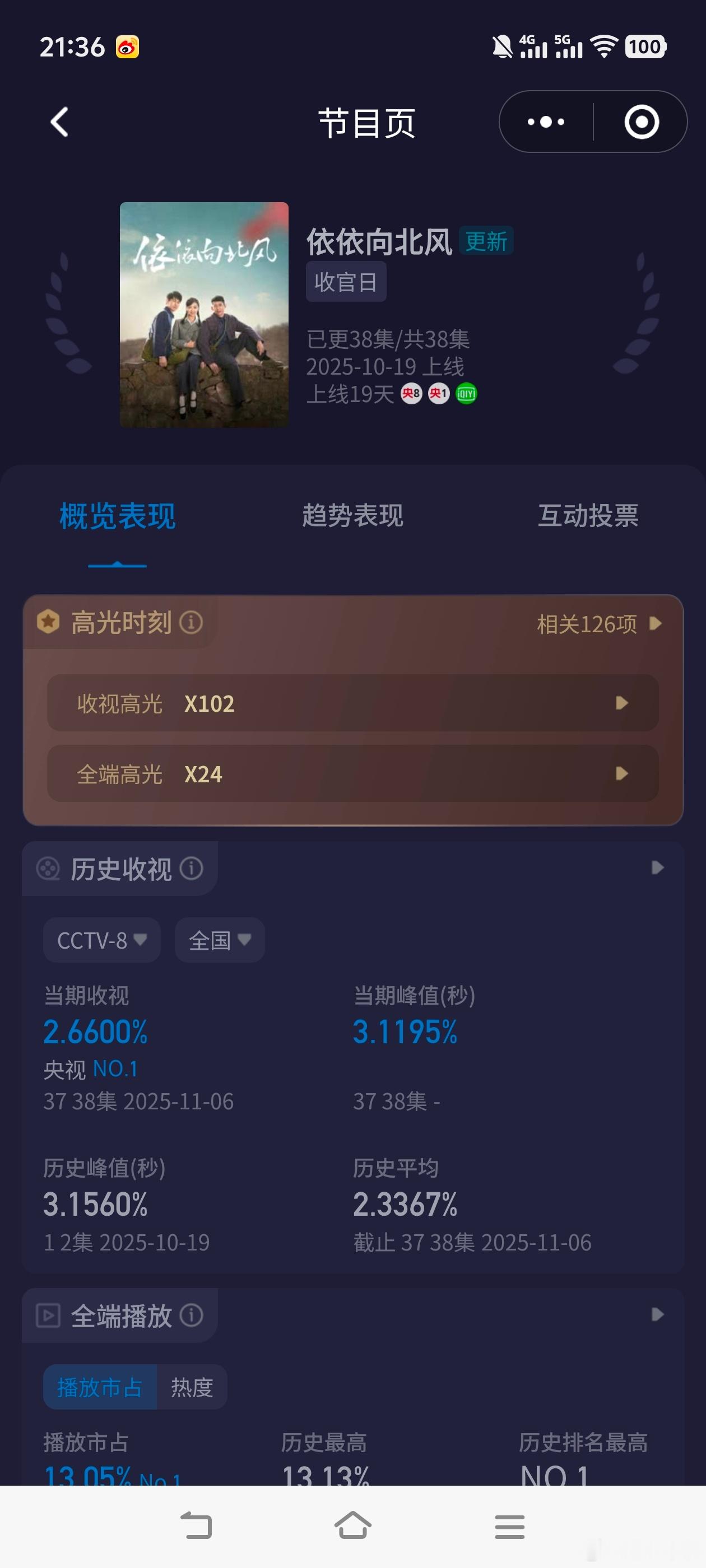 依依向北风 大结局收视率再创新高!最后几天收视率好猛!今晚平均2.6600,cvb估值