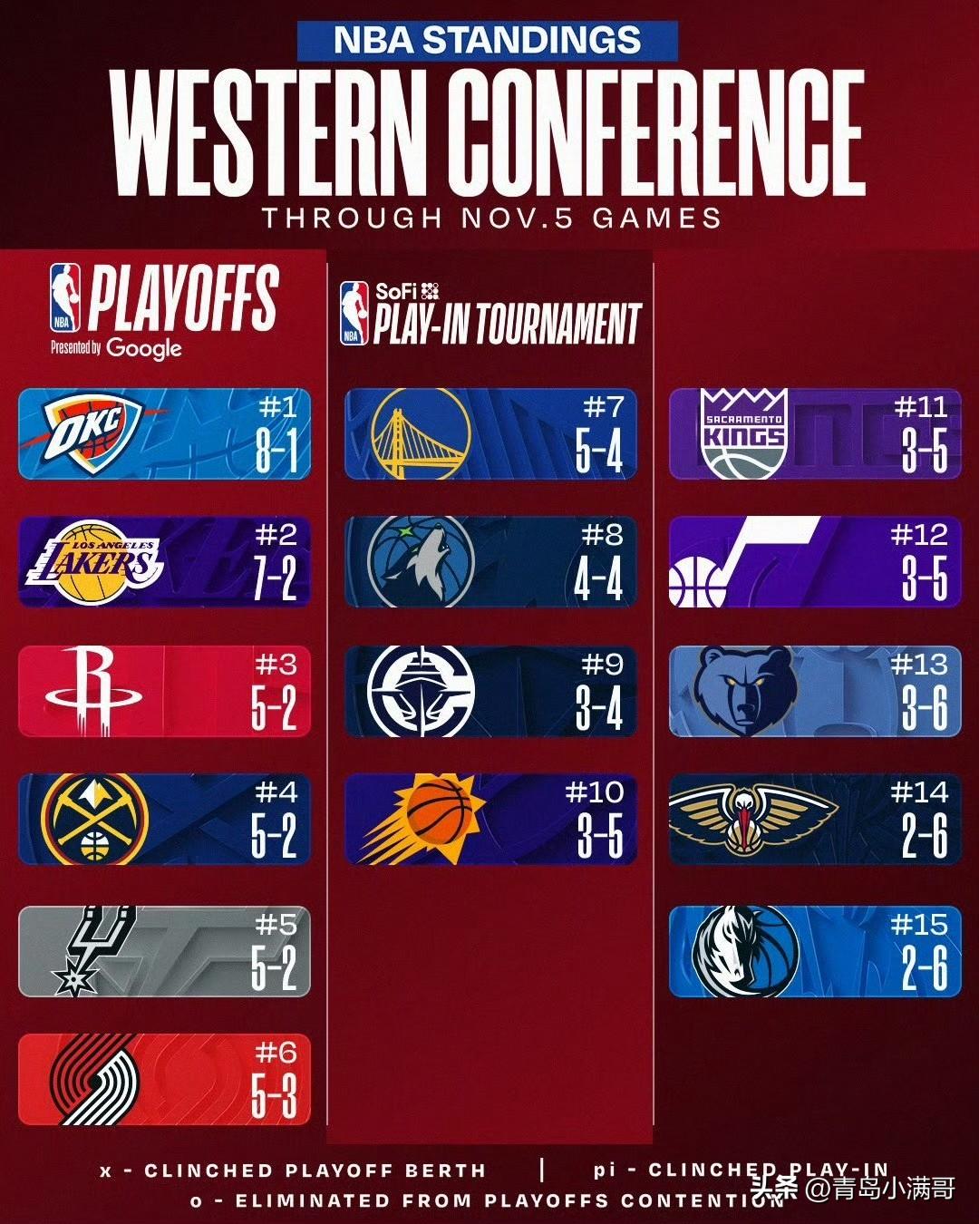 东西部最新战绩排名!!!湖人升至第二,勇士跌至第七,独行侠垫底! 北京时间11