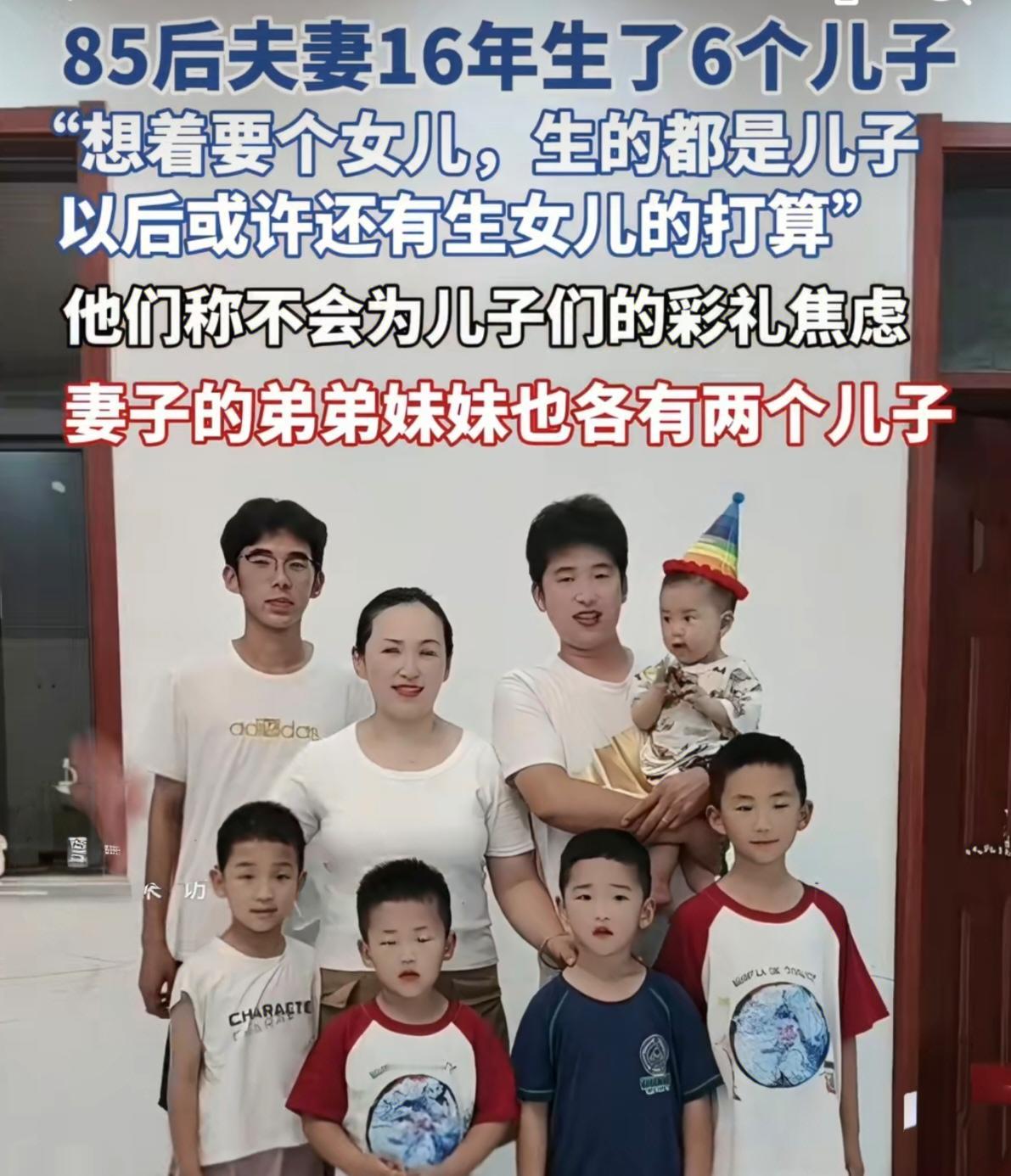 山东85后夫妻16年生6子,直言不焦虑彩礼问题 近日,山东临沂贾家庄村一对85后夫妻因16年连生6个儿子引发全网关注。38岁的张女士与39岁的丈夫贾先生2013年结婚,六个儿子分别生于2008年至2024年,最小的孩子刚满1岁。 夫妻俩原本一心盼着生个女儿凑“好”字,却接连迎来六个“小王子”。张女士坦言,照顾六个孩子虽耗费大量精力,但兄弟间打打闹闹又相互扶持的日常,让家庭充满烟火气,孩子们都是生命中珍贵的礼物。 面对网友热议的“六份彩礼”压力,夫妻俩心态豁达,直言没考虑那么远,不必为未发生的事焦虑,当下只想好好养育孩子。丈夫贾先生经营餐饮店,一家人还在社交平台分享生活点滴,乐观态度感染众多网友。