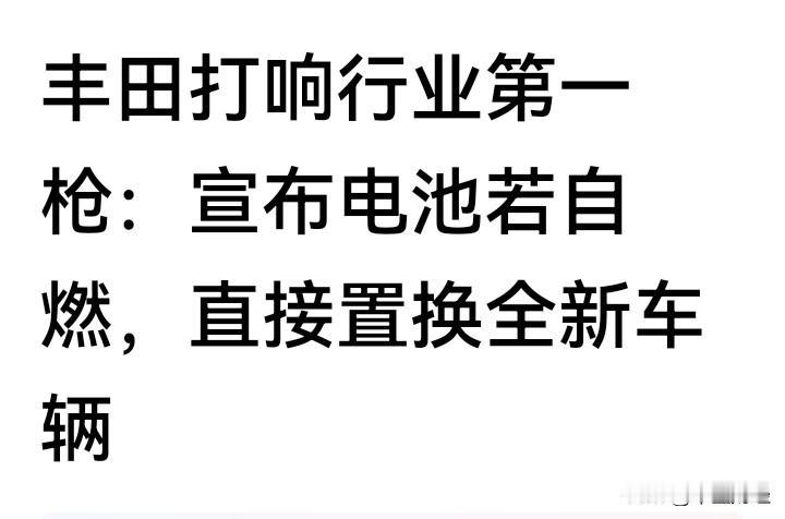 【汽车行业第一枪】尽管丰田汽车一心专注于燃油车的制造,却也在逐步涉足电动汽车领域。 最新消息表明,丰田汽车在汽车电池方面率先出击。倘若丰田汽车出现电池自燃的状况,将为车主全部更换新车!这可不是每家企业都有能力做到的。丰田 丰田销量 丰田汽车战略 丰田车企 丰田品牌